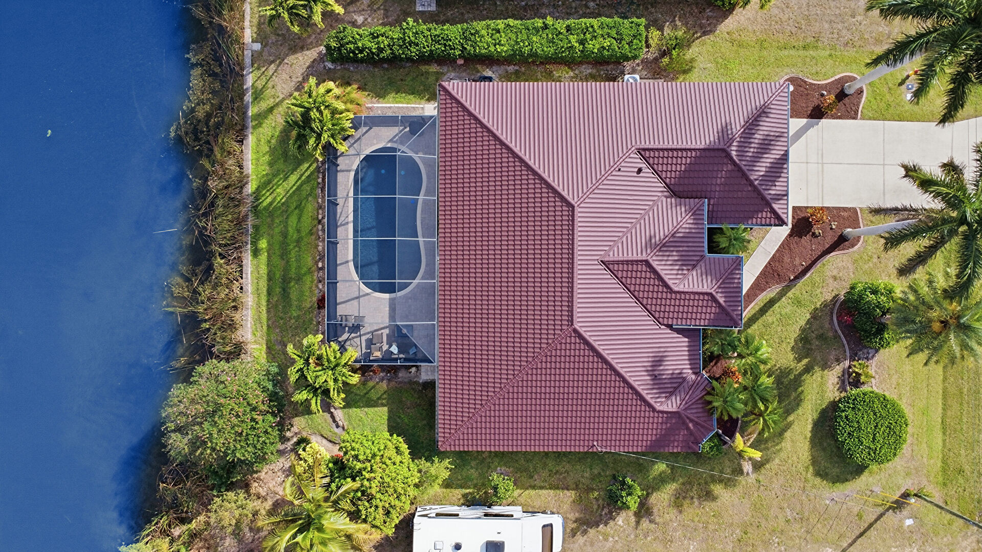 Central Ac, Downspout, Driveway, Gutters, Lawn, Stucco Siding, Tile Roof, Downspout, Driveway, Lawn, Stucco Siding, Tile Roof
