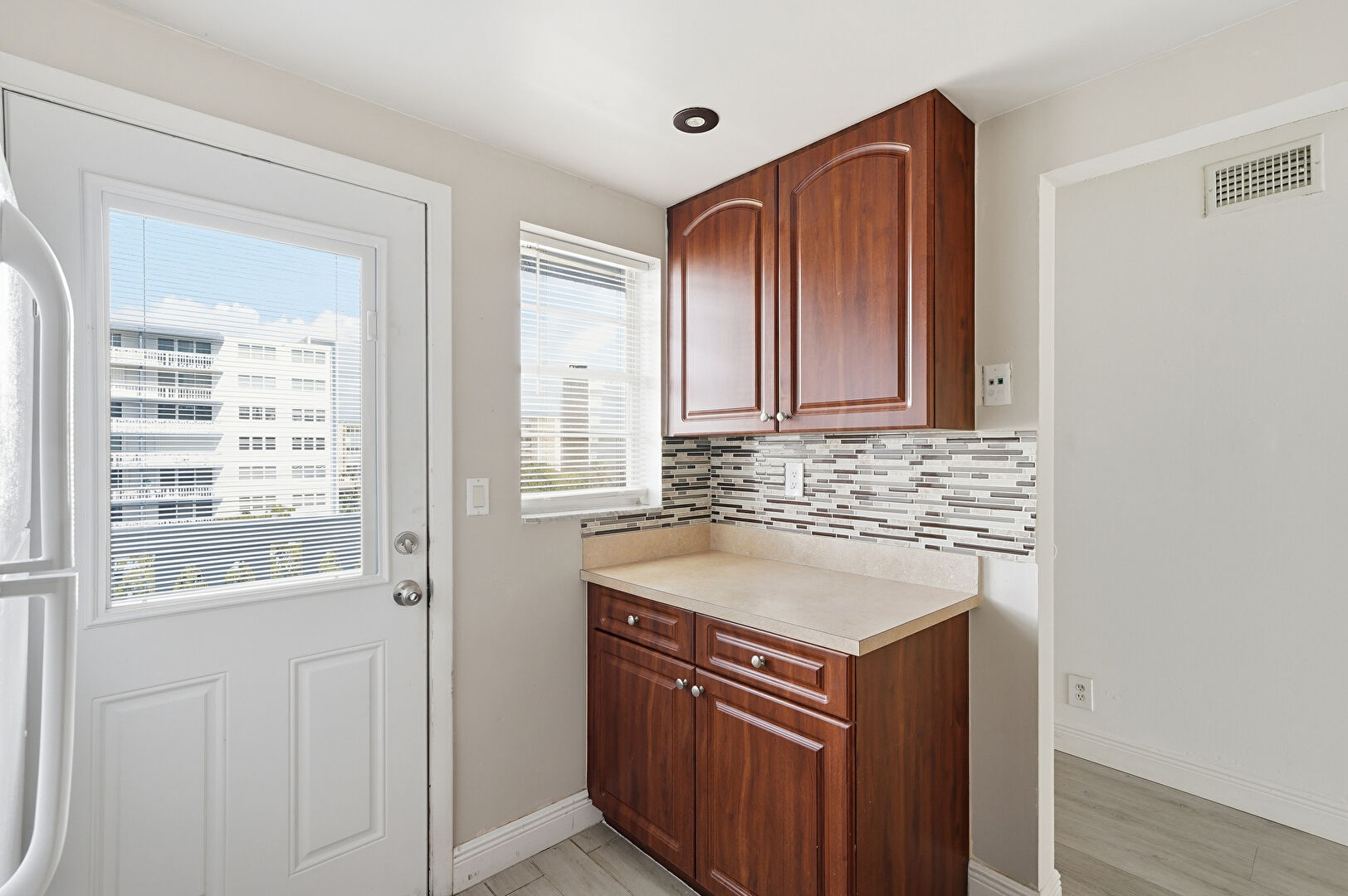 Arched Cabinets, Baseboards Wall, Drywall, Medium Brown Cabinets, Natural Light, Pass Through Window, Pendant Lighting, Raised Cabinets, Recessed Lighting, Reddish Brown Cabinets, Vent, Drywall, Raised Cabinets, Textured Ceiling
