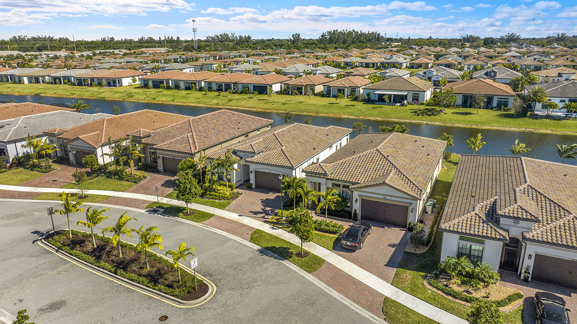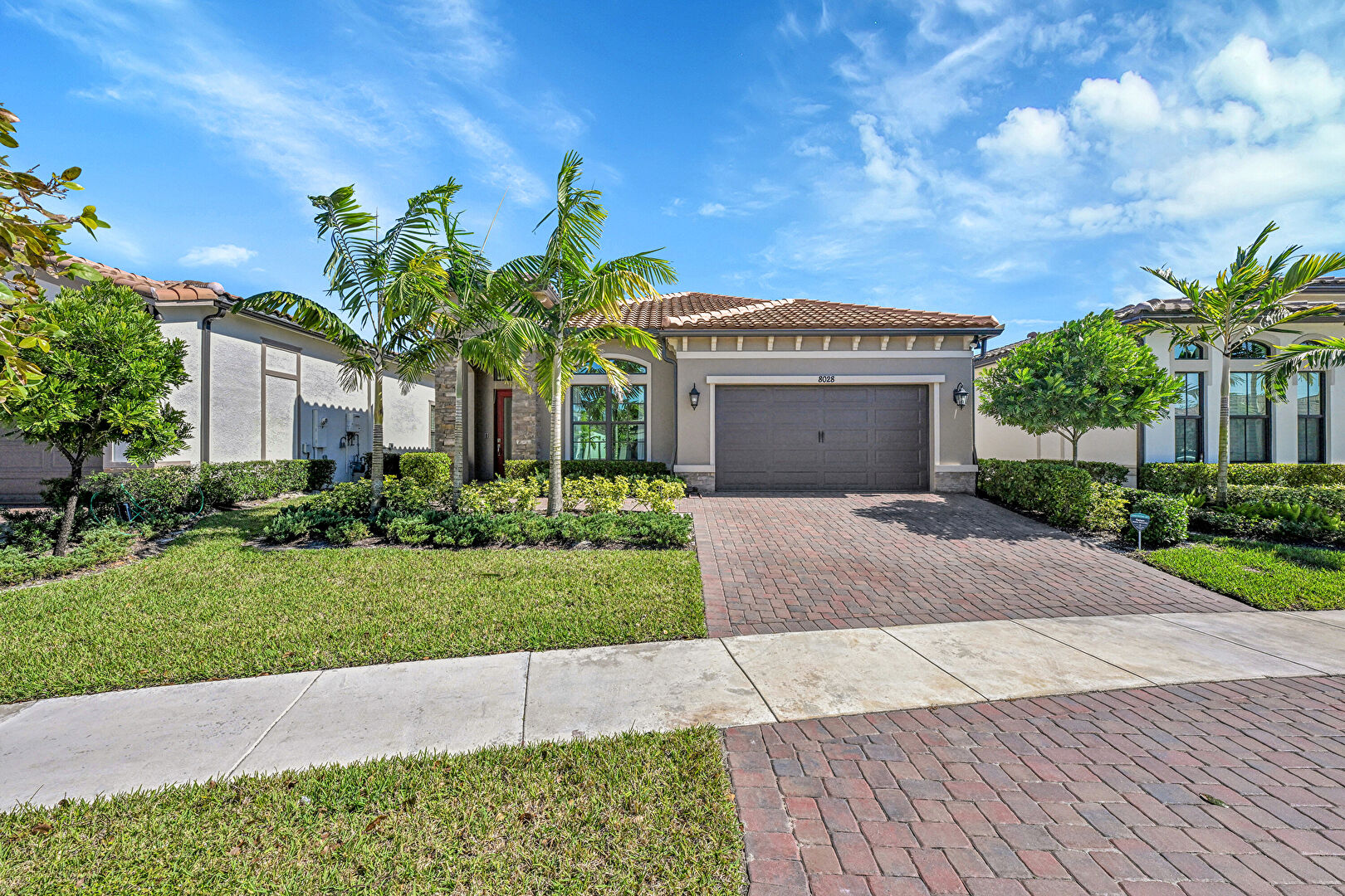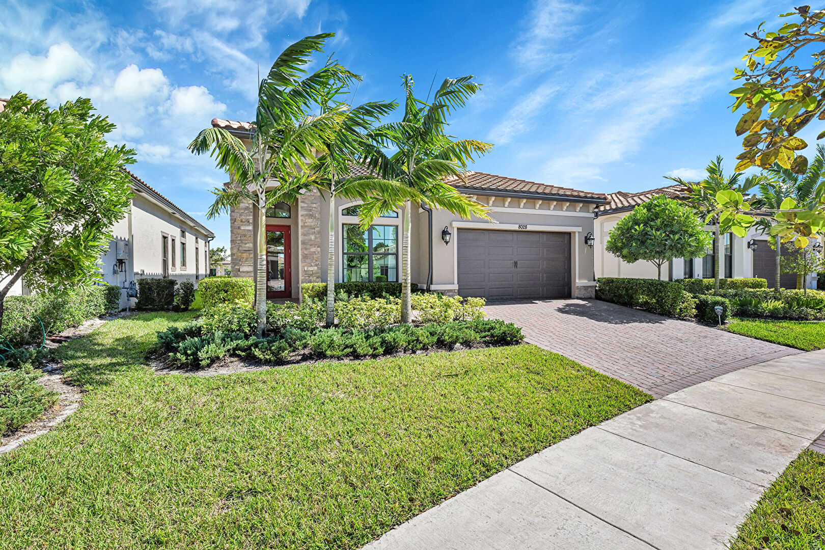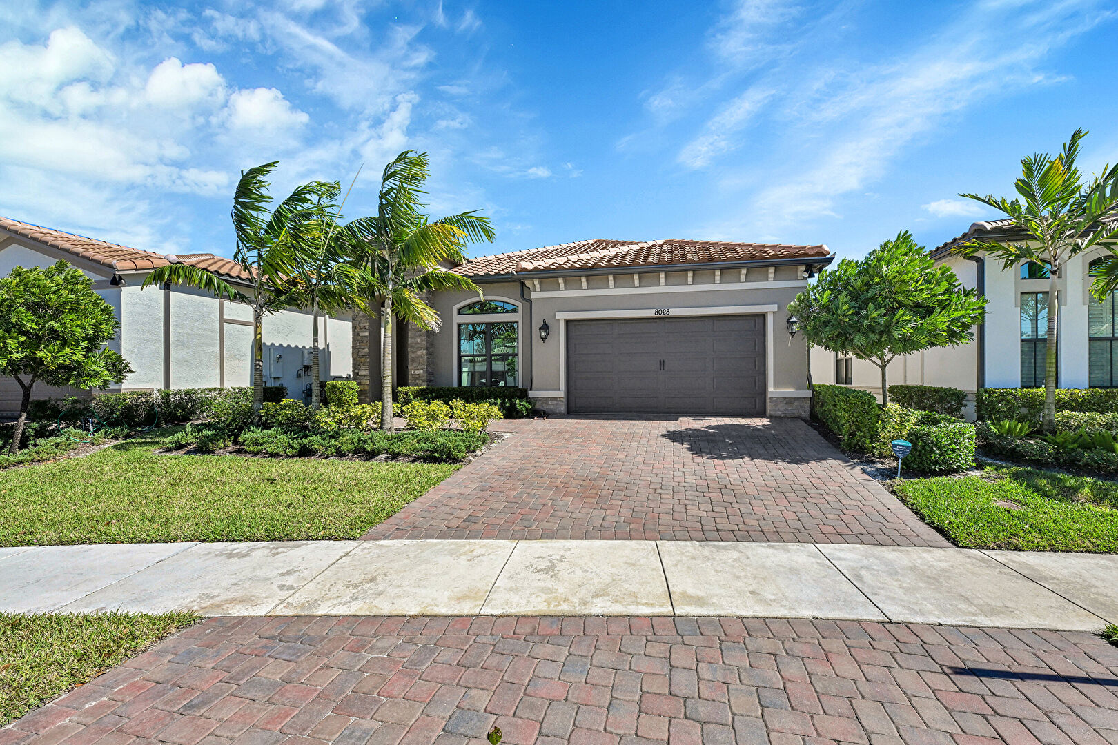 Downspout, Driveway, Lawn, Residential View, Stone Siding, Stucco Siding, Tile Roof, Water Meter, Driveway, Gutters, Lawn, Stone Siding, Tile Roof