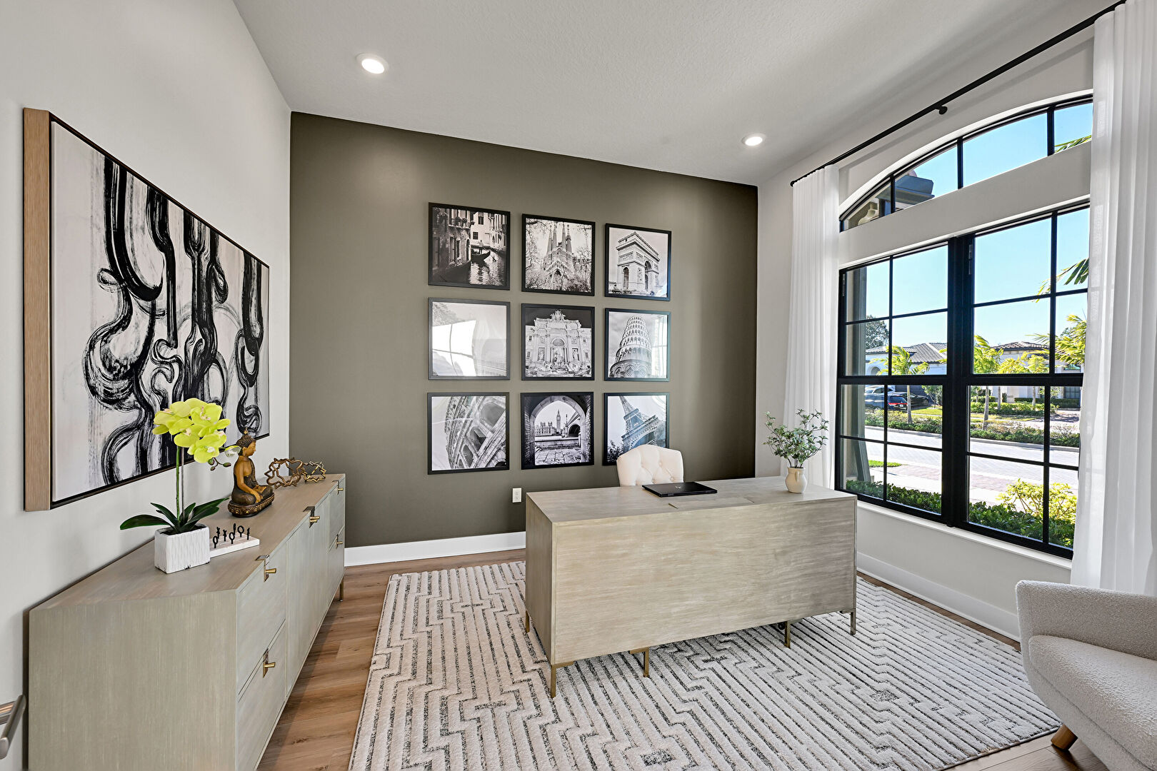 Baseboards Wall, Drywall, Natural Light, Office Area, Recessed Lighting, Wood Finish Floor, Baseboards Wall, Natural Light