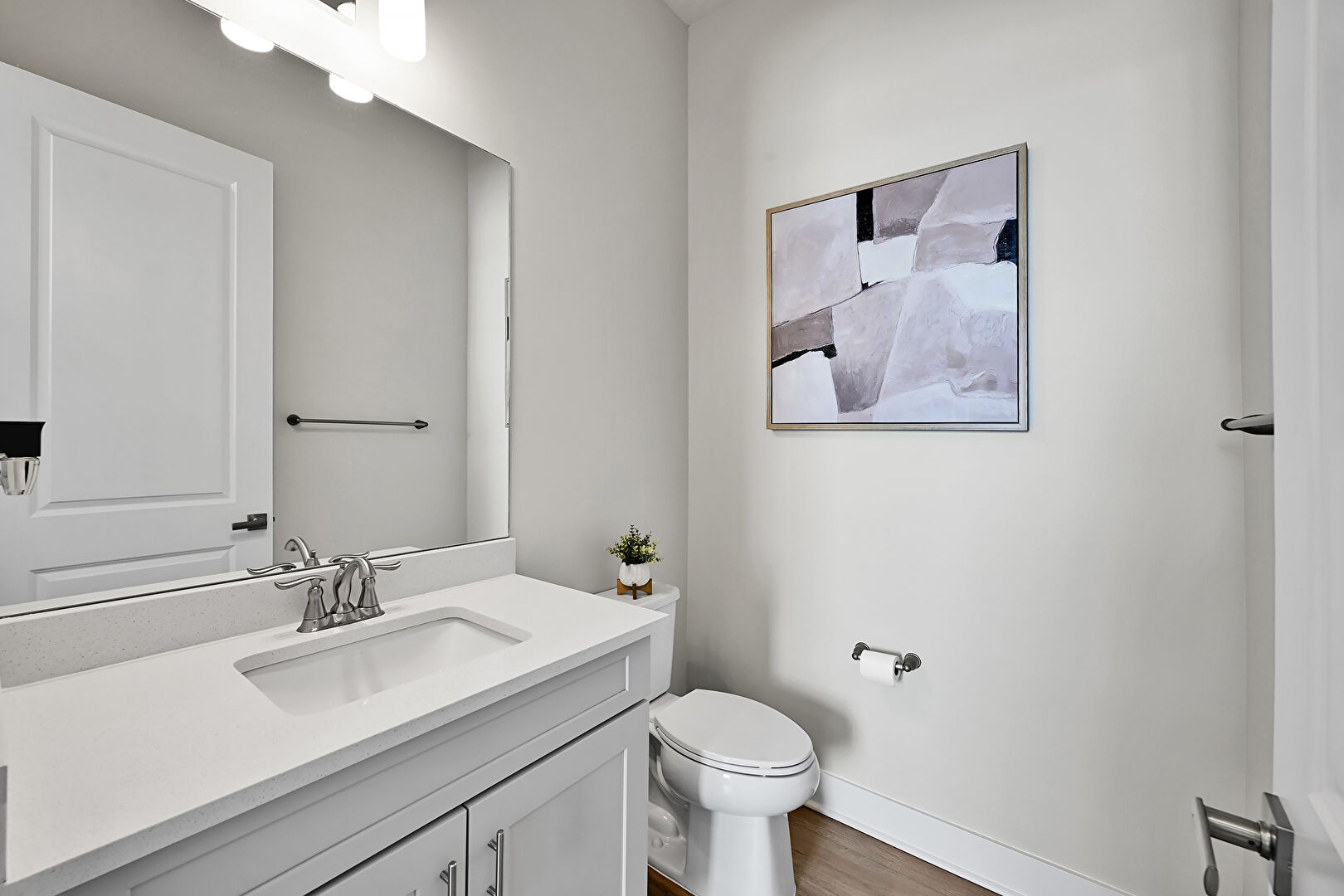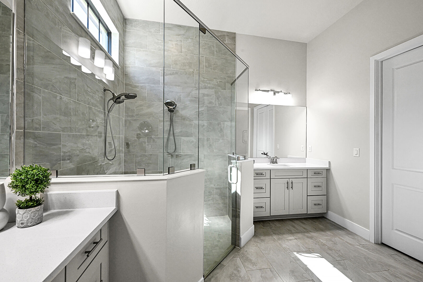 Baseboards Wall, Combined Bath Shower, Drywall, Full Bathroom, Half Bathroom, Marble Finish Floor, Natural Light, Two Single Vanities, Vanity, Vent, Wood Finish Floor, Baseboards Wall, Full Bathroom, Natural Light