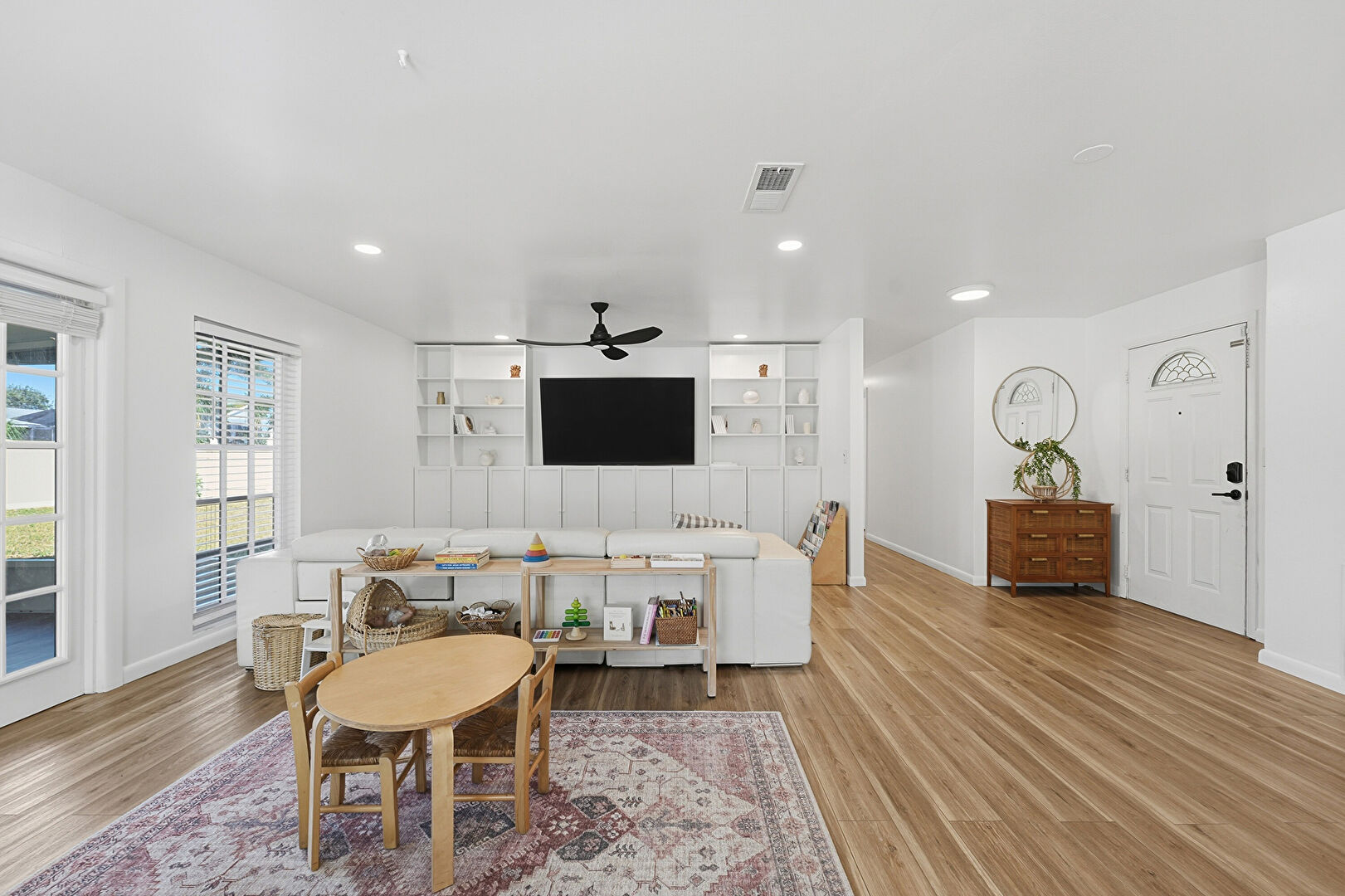 Baseboards Wall, Ceiling Fan, Drywall, French Doors, Natural Light, Recessed Lighting, Vent, Wood Finish Floor, Baseboards Wall, Natural Light, Recessed Lighting