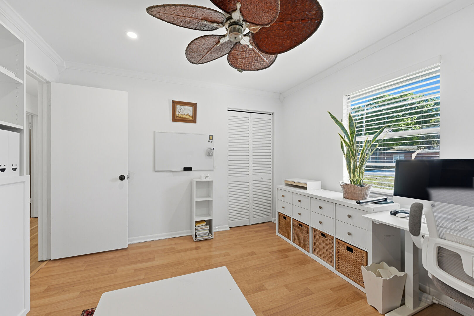 Baseboards Wall, Ceiling Fan, Crown Molding, Drywall, Natural Light, Office Area, Recessed Lighting, Wood Finish Floor, Ceiling Fan, Natural Light, Wood Finish Floor