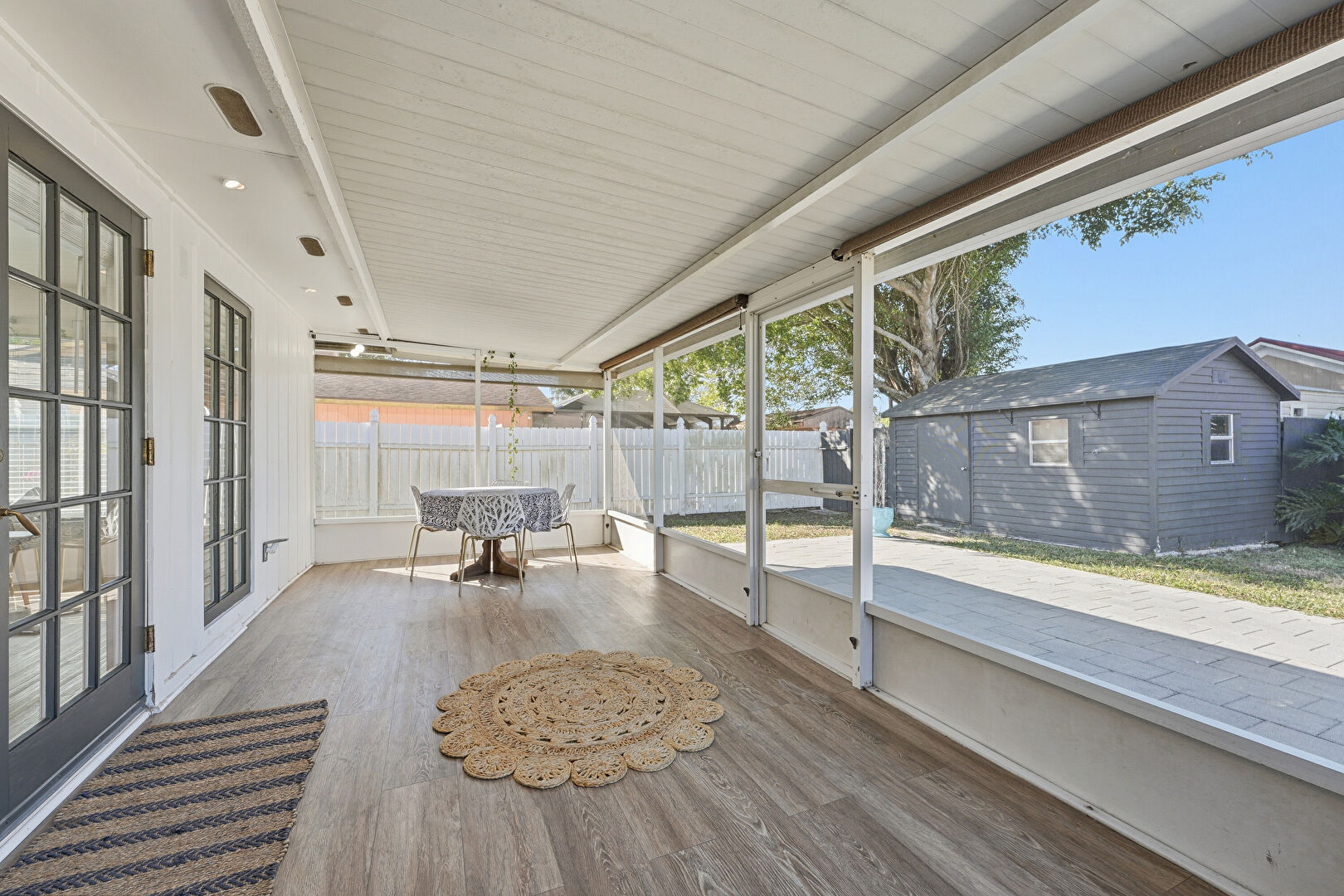 French Doors, Lawn, Natural Light, Outdoor Dining Area, Outdoor Structure, Patio, Shed, Sunroom, Fence, Outdoor Dining Area, Sunroom