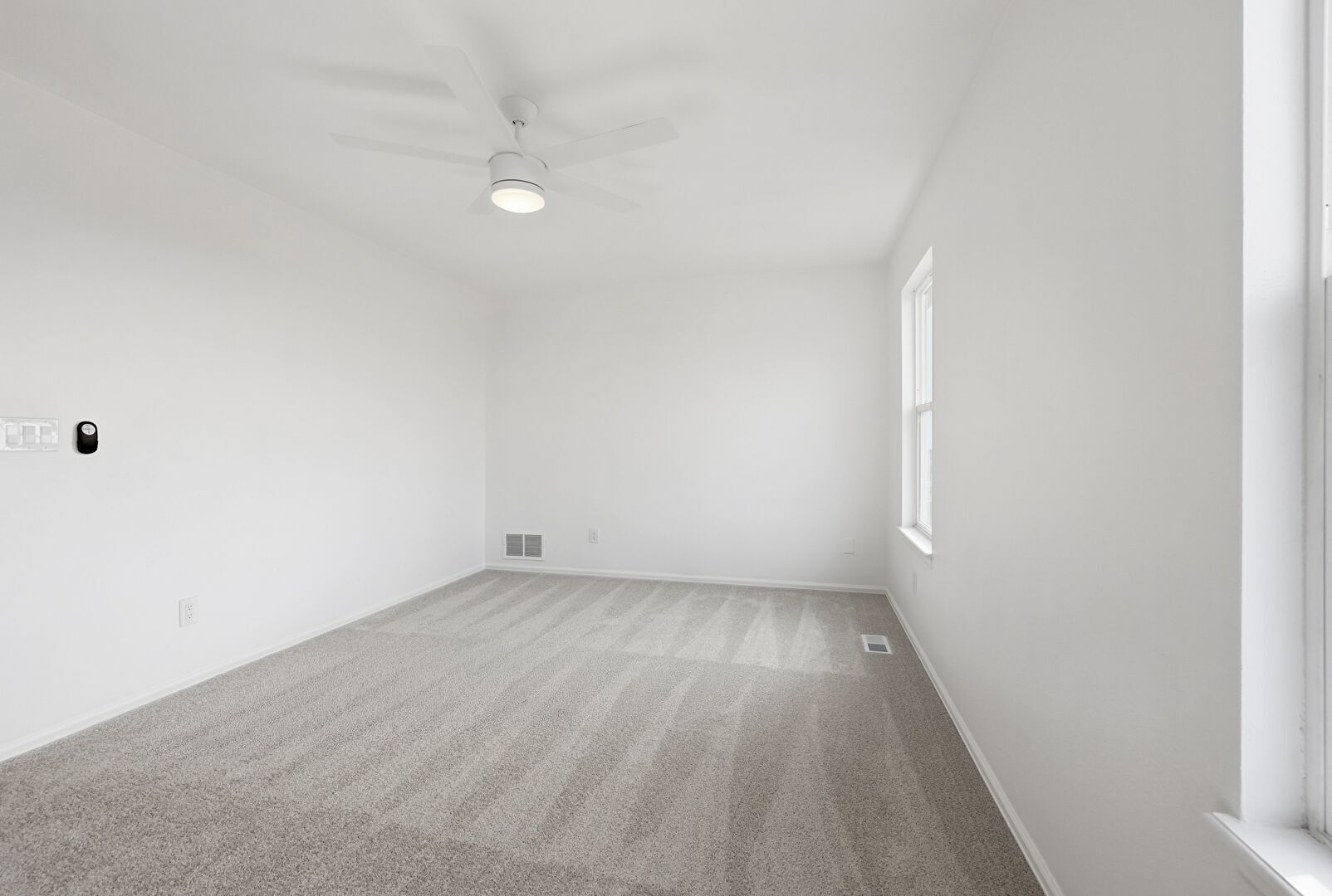 Baseboards Wall, Carpet, Ceiling Fan, Drywall, Natural Light, Vent, Drywall, Vent