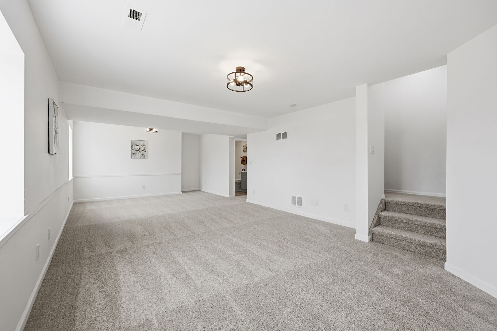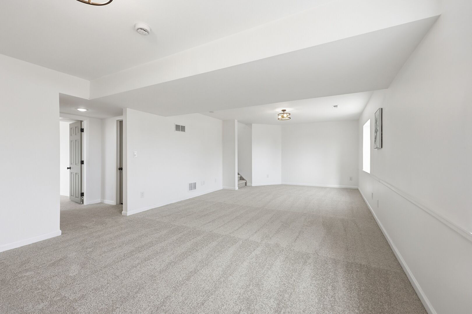 Baseboards Wall, Basement, Carpet, Drywall, Natural Light, Recessed Lighting, Stairs, Vent, Drywall, Natural Light, Smoke Carbon Monoxide Detector