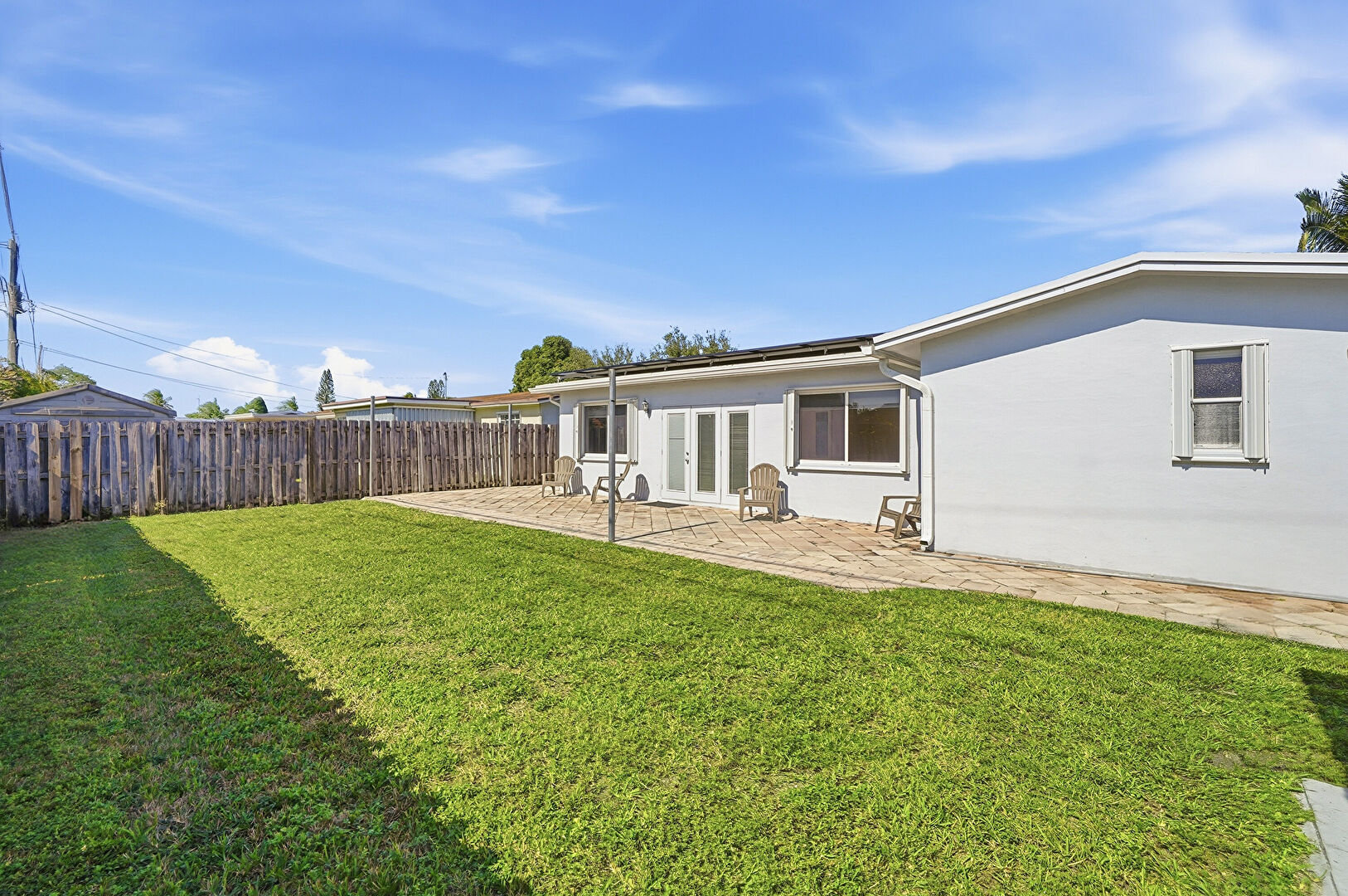 French Doors, Lawn, Patio, Fence