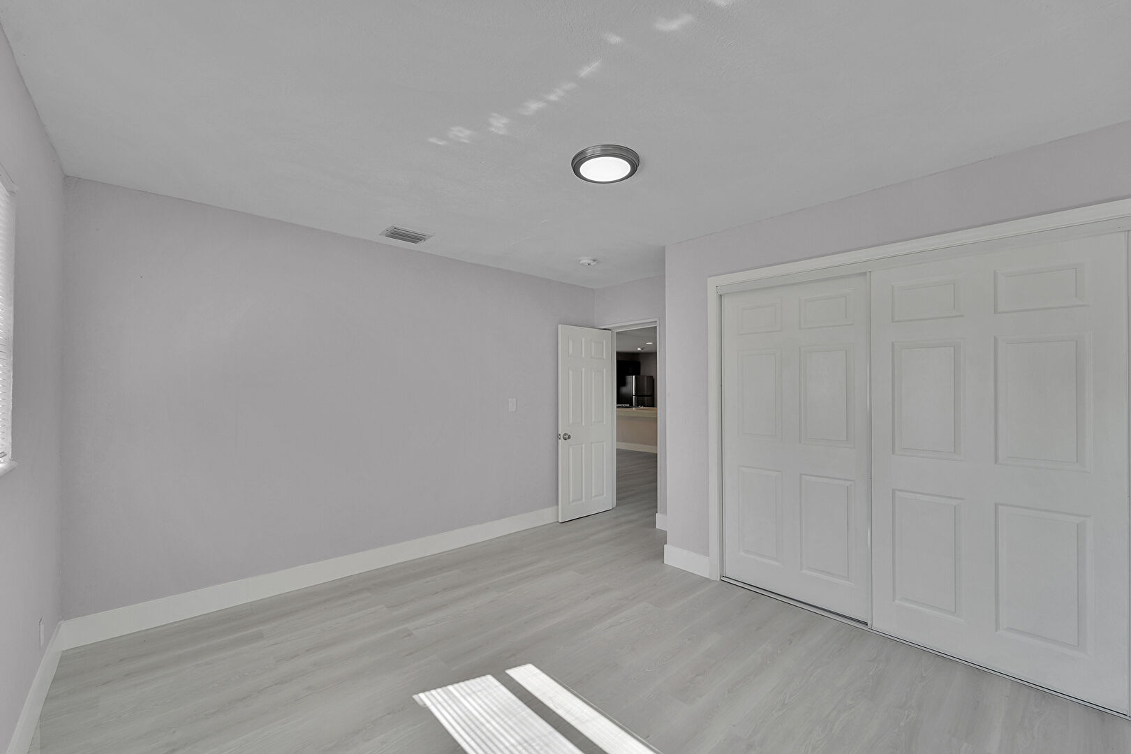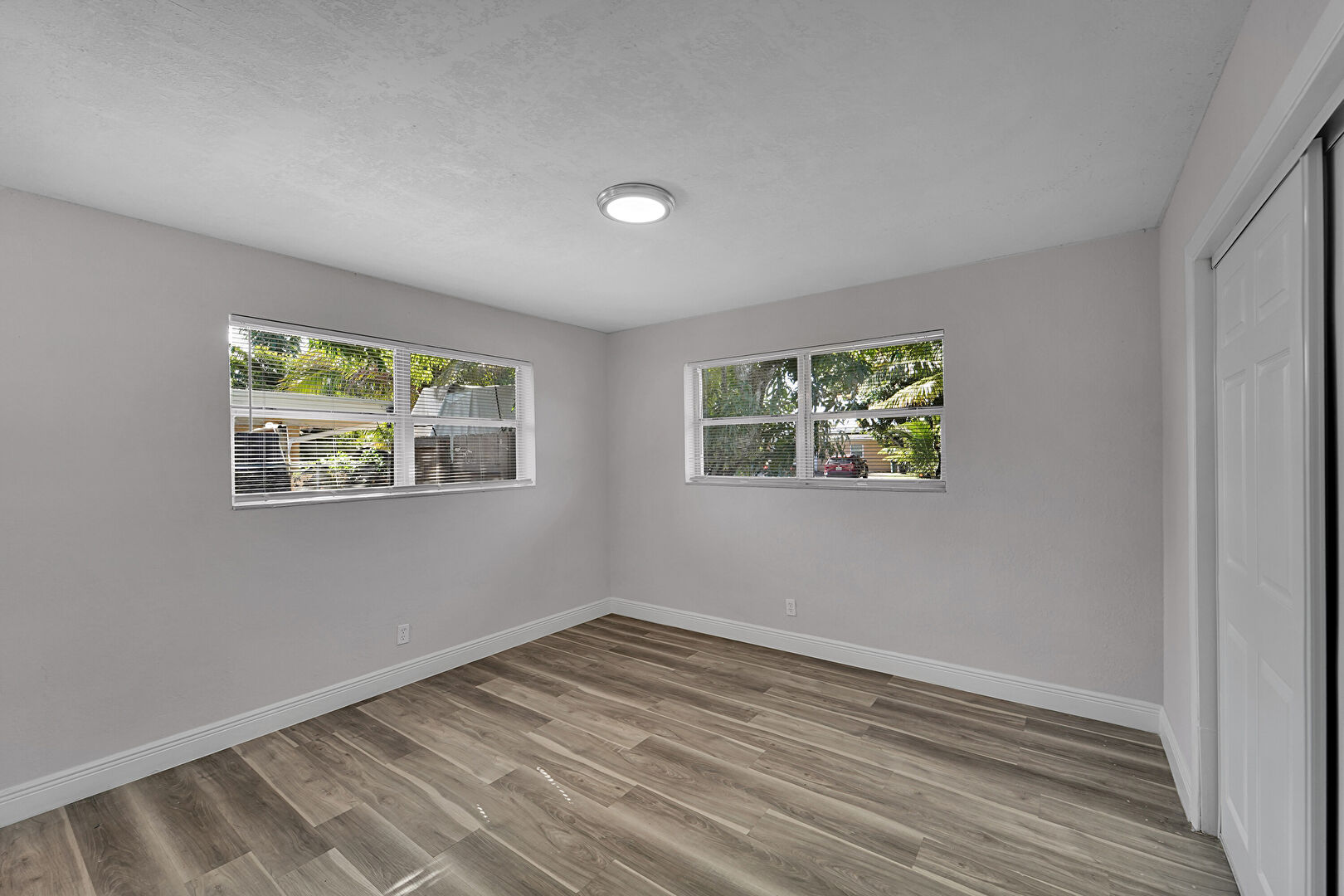 Baseboards Wall, Closet, Natural Light, Textured Ceiling, Vent, Wood Finish Floor, Drywall