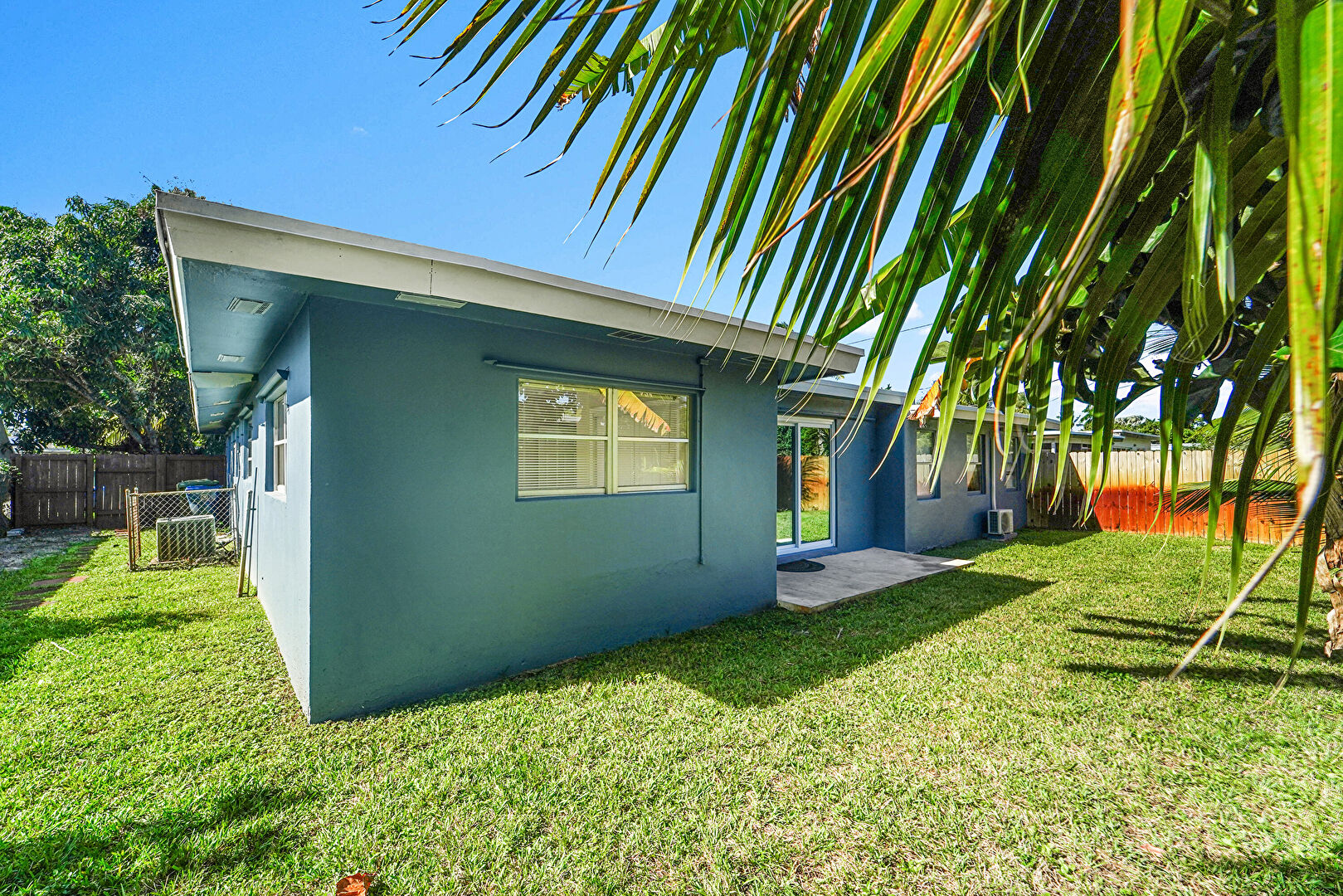Fence, Lawn, Patio, Split Ac Unit, Stucco Siding, Lawn, Patio