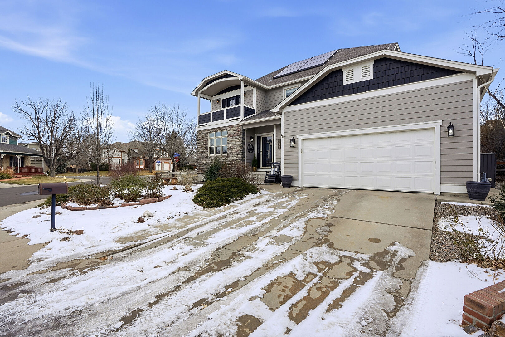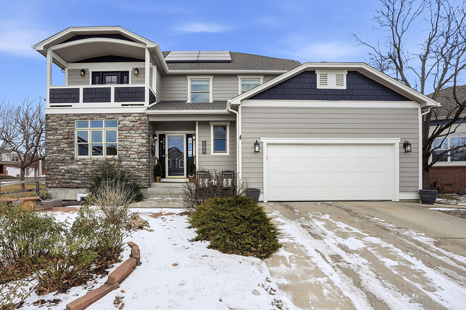 Balcony, Concrete Foundation, Downspout, Driveway, Fence, Gate, Gutters, Horizontal Siding, Porch, Residential View, Shake Shingle Siding, Shingle Roof, Solar Panels, Stone Siding, Stoop, Concrete Foundation, Downspout, Driveway, Gutters, Residential View, Stoop