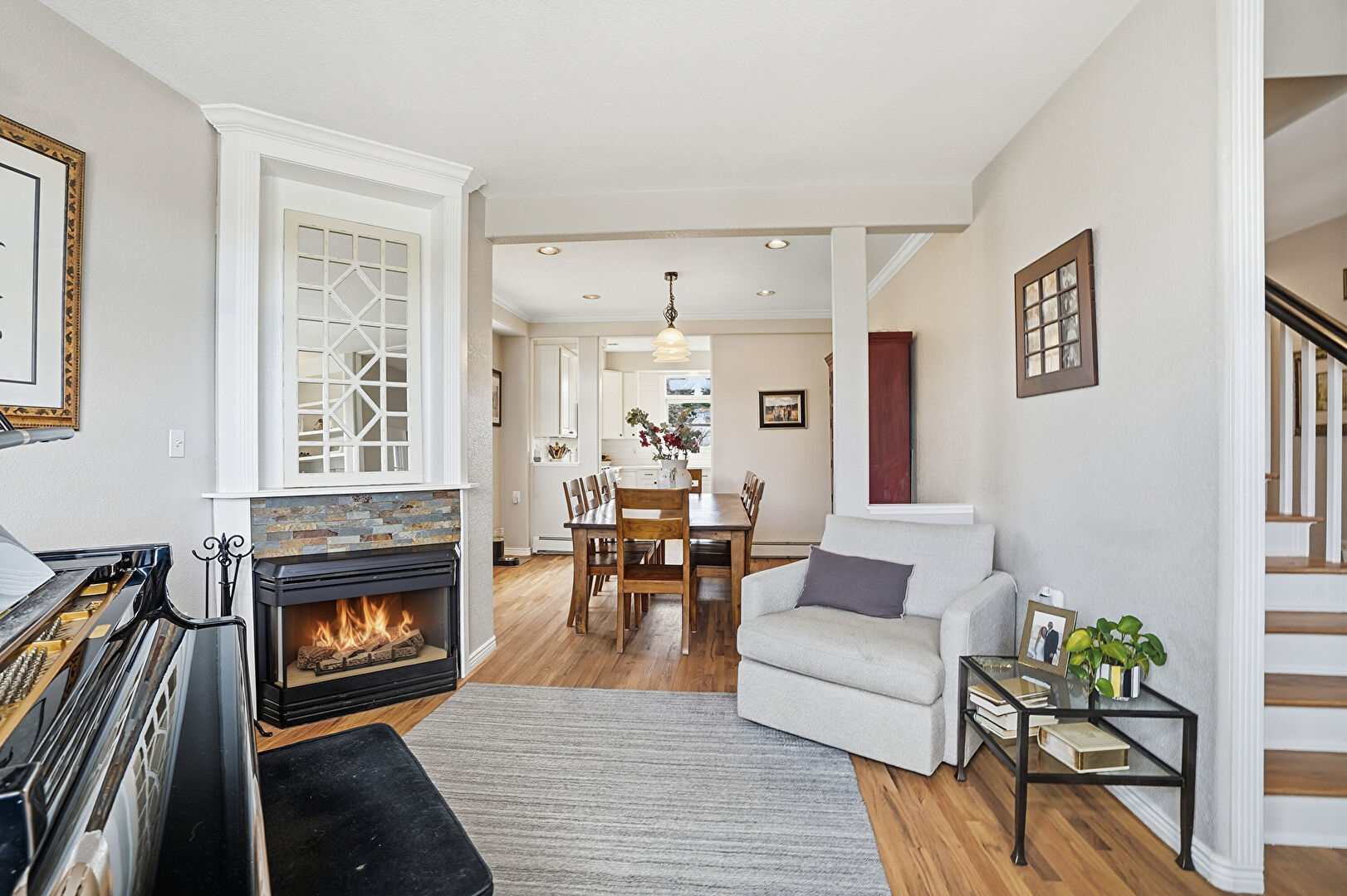 Baseboard Radiator, Baseboards Wall, Crown Molding, Drywall, Fireplace, Natural Light, Recessed Lighting, Stairs, Wood Finish Floor, Baseboards Wall, Drywall, Wood Finish Floor