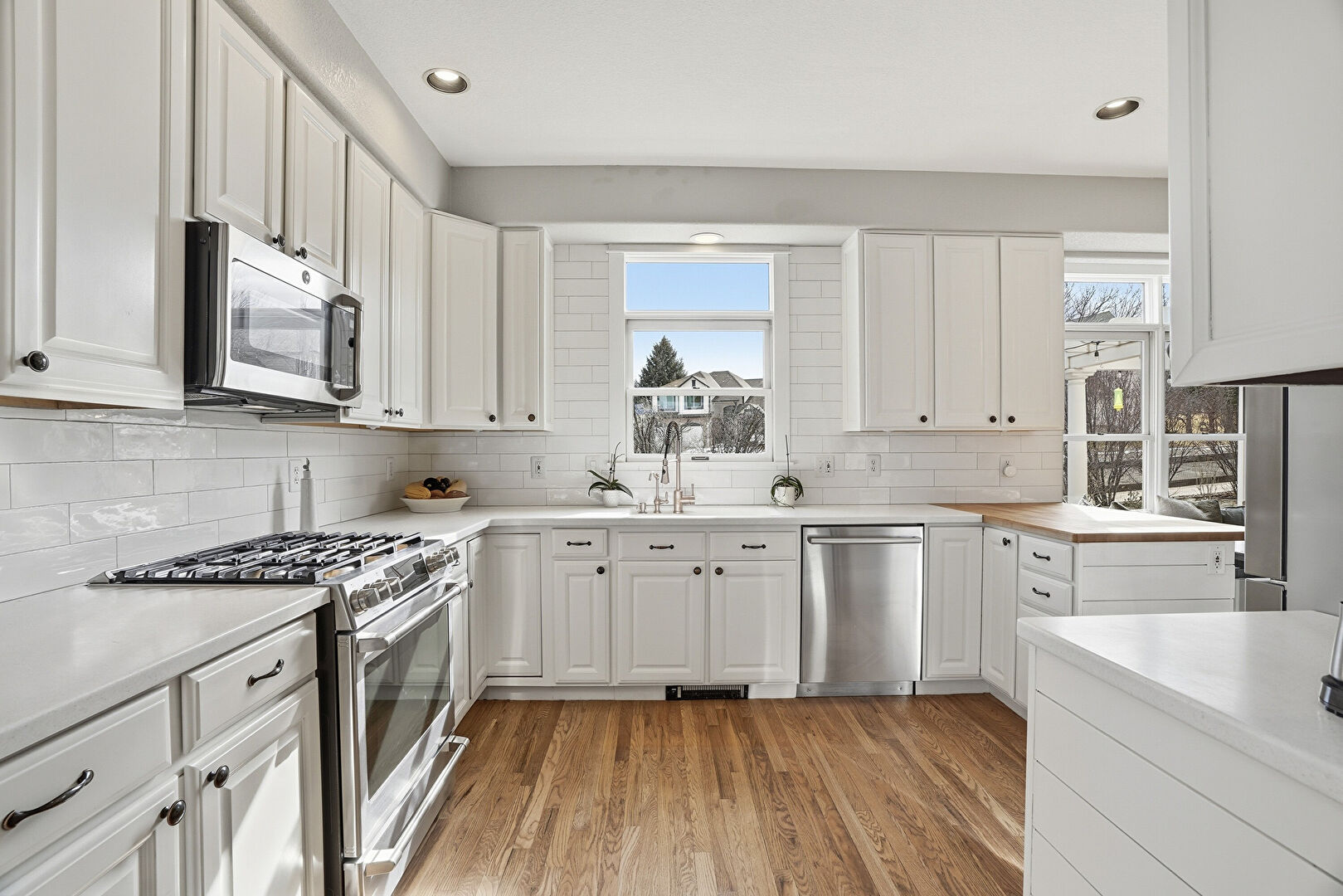 Baseboards Wall, Drywall, G Shaped Kitchen, Natural Light, Recessed Lighting, Vent, Wall Mounted Ac, Wood Finish Floor, Natural Light, Wall Mounted Ac, Wood Finish Floor