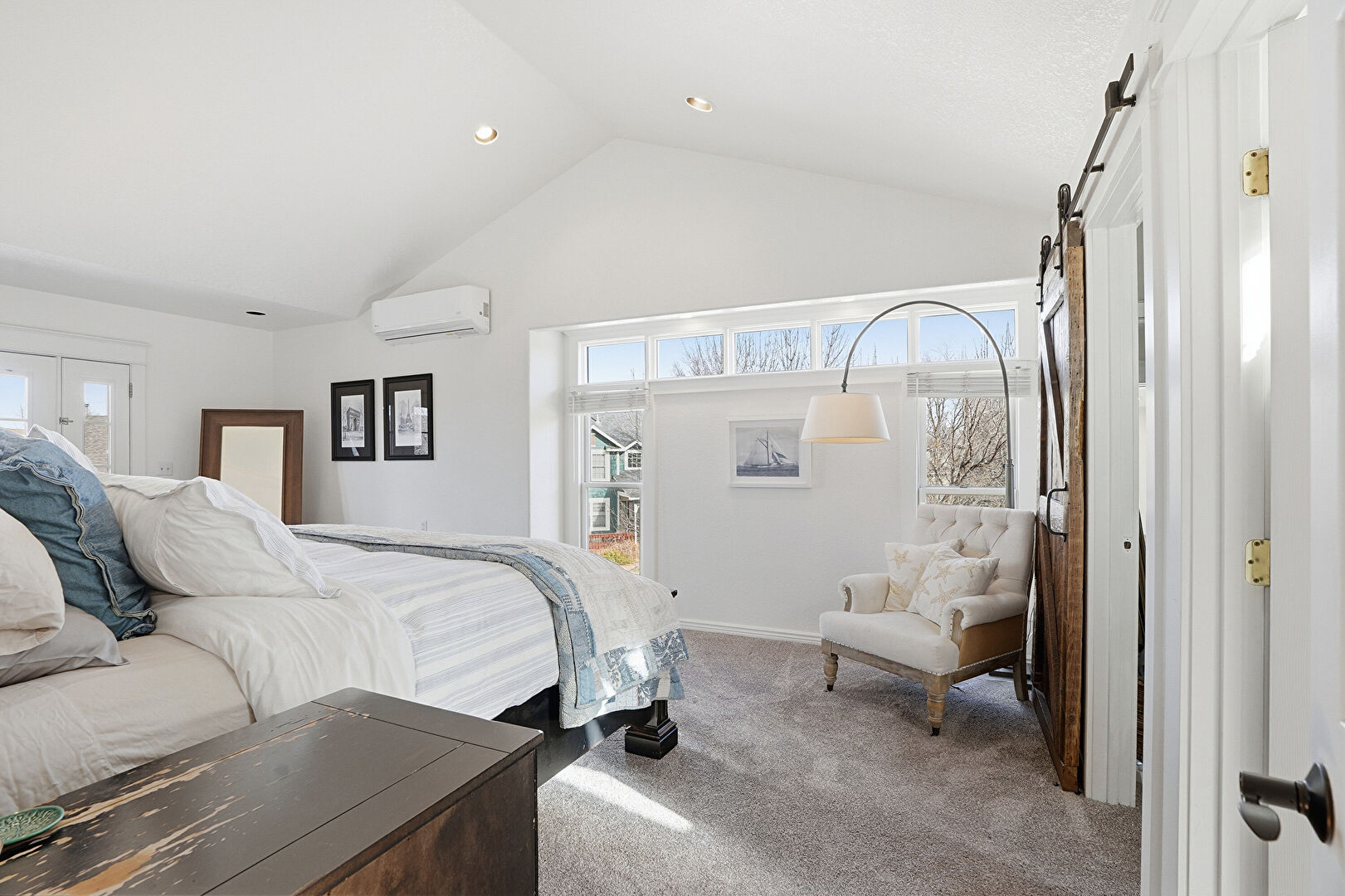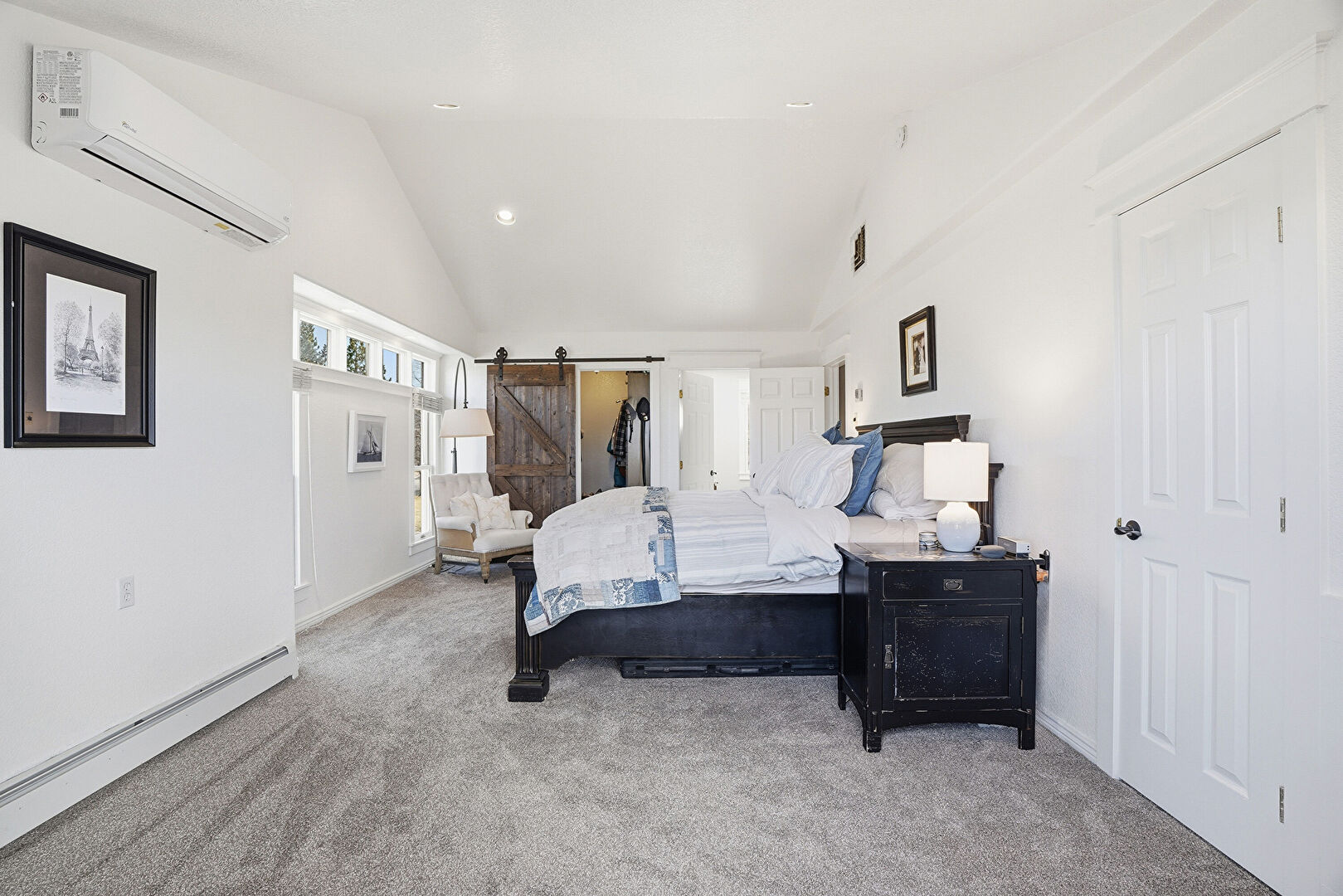 Access To Exterior, Barn Door, Baseboard Radiator, Baseboards Wall, Built In Shelves, Carpet, Cathedral Ceiling, Drywall, Ensuite Bathroom, French Doors, High Ceiling, Indoor Bar, Natural Light, Recessed Lighting, Vaulted Ceiling, Vent, Walk In Closet, Wall Mounted Ac, Baseboard Radiator, Baseboards Wall, High Ceiling, Natural Light