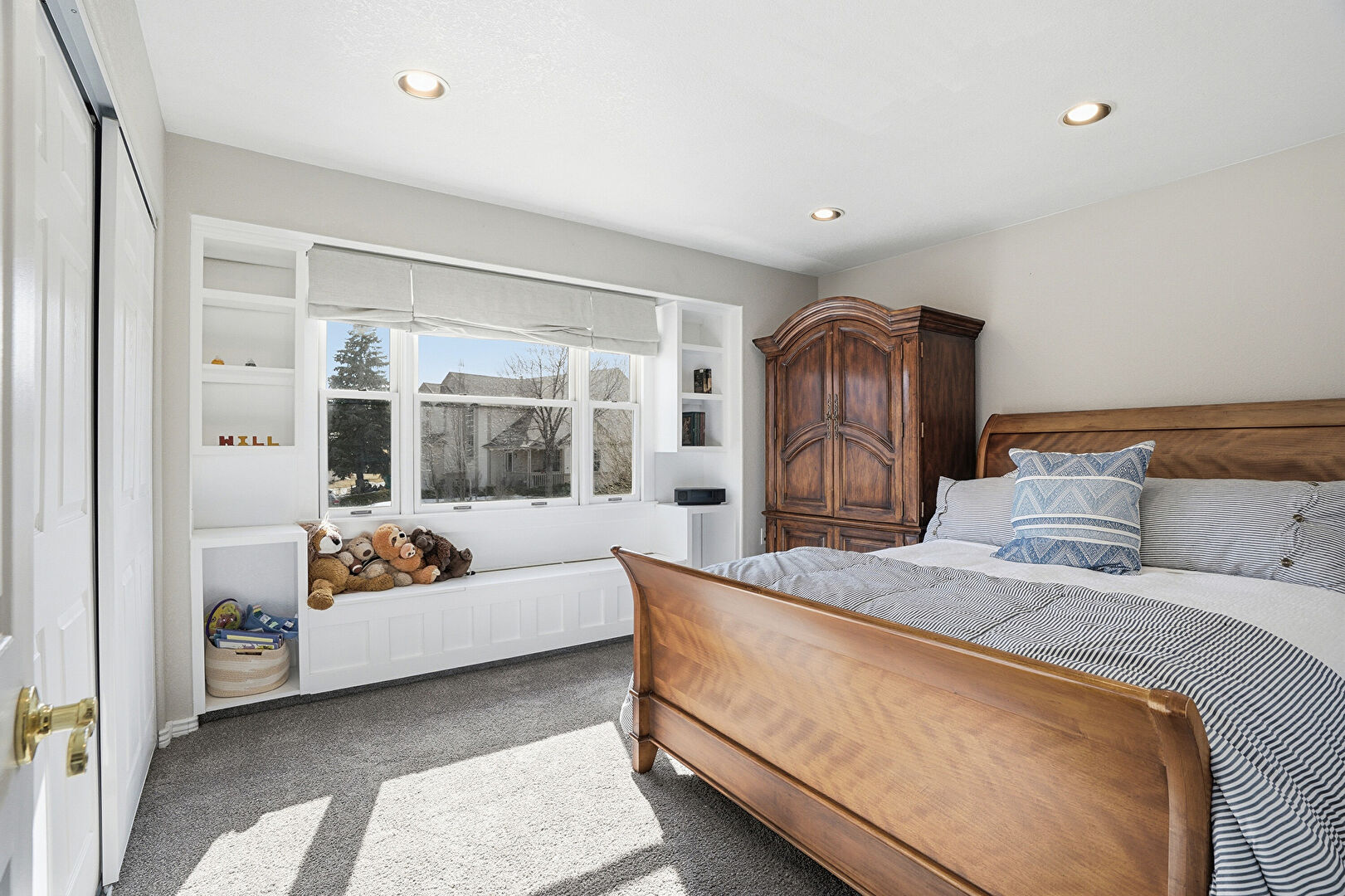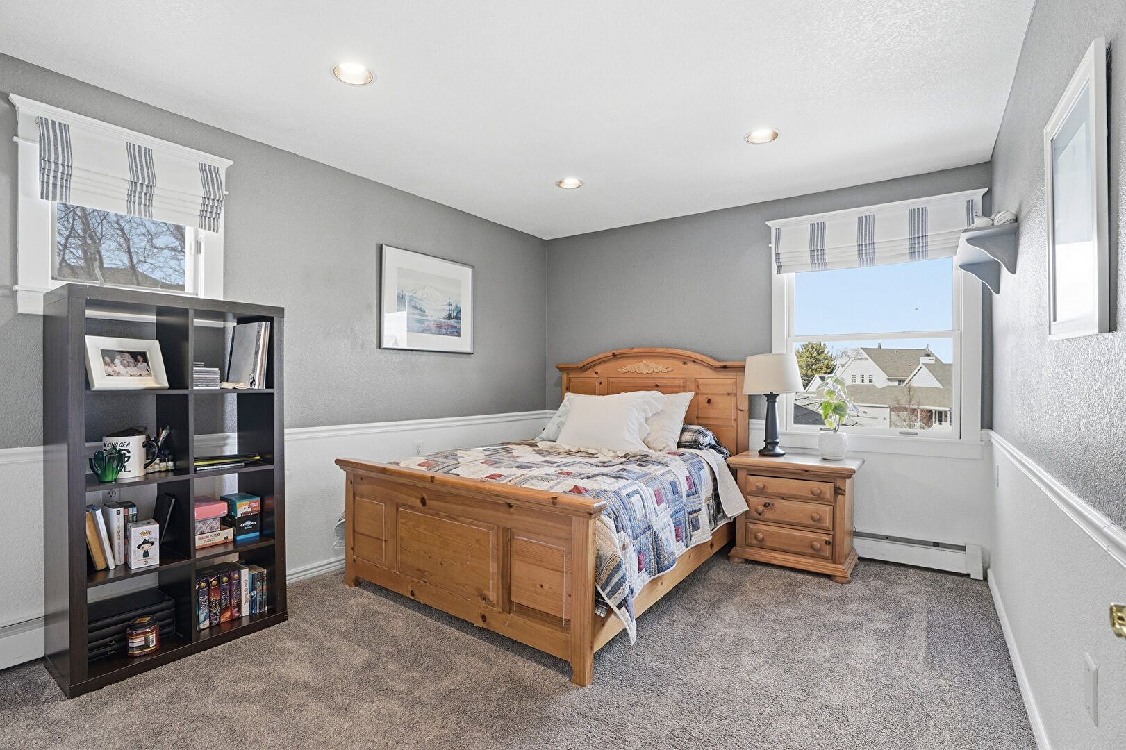 Baseboard Radiator, Baseboards Wall, Carpet, Closet, Drywall, Natural Light, Recessed Lighting, Wainscot Wall, Carpet, Recessed Lighting