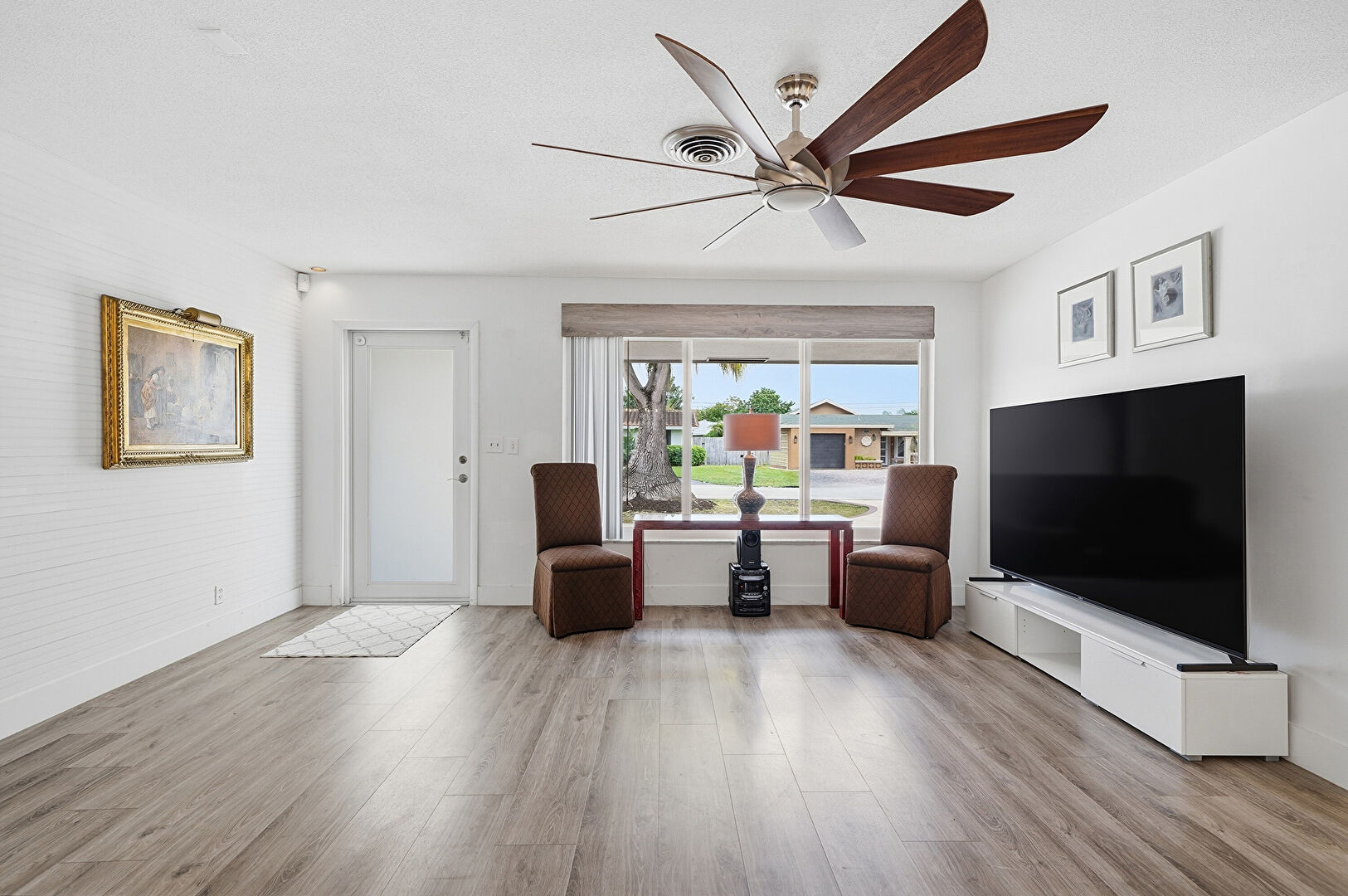 Baseboards Wall, Ceiling Fan, Drywall, Natural Light, Vent, Wood Finish Floor