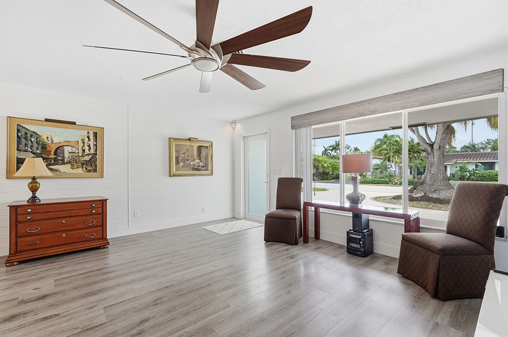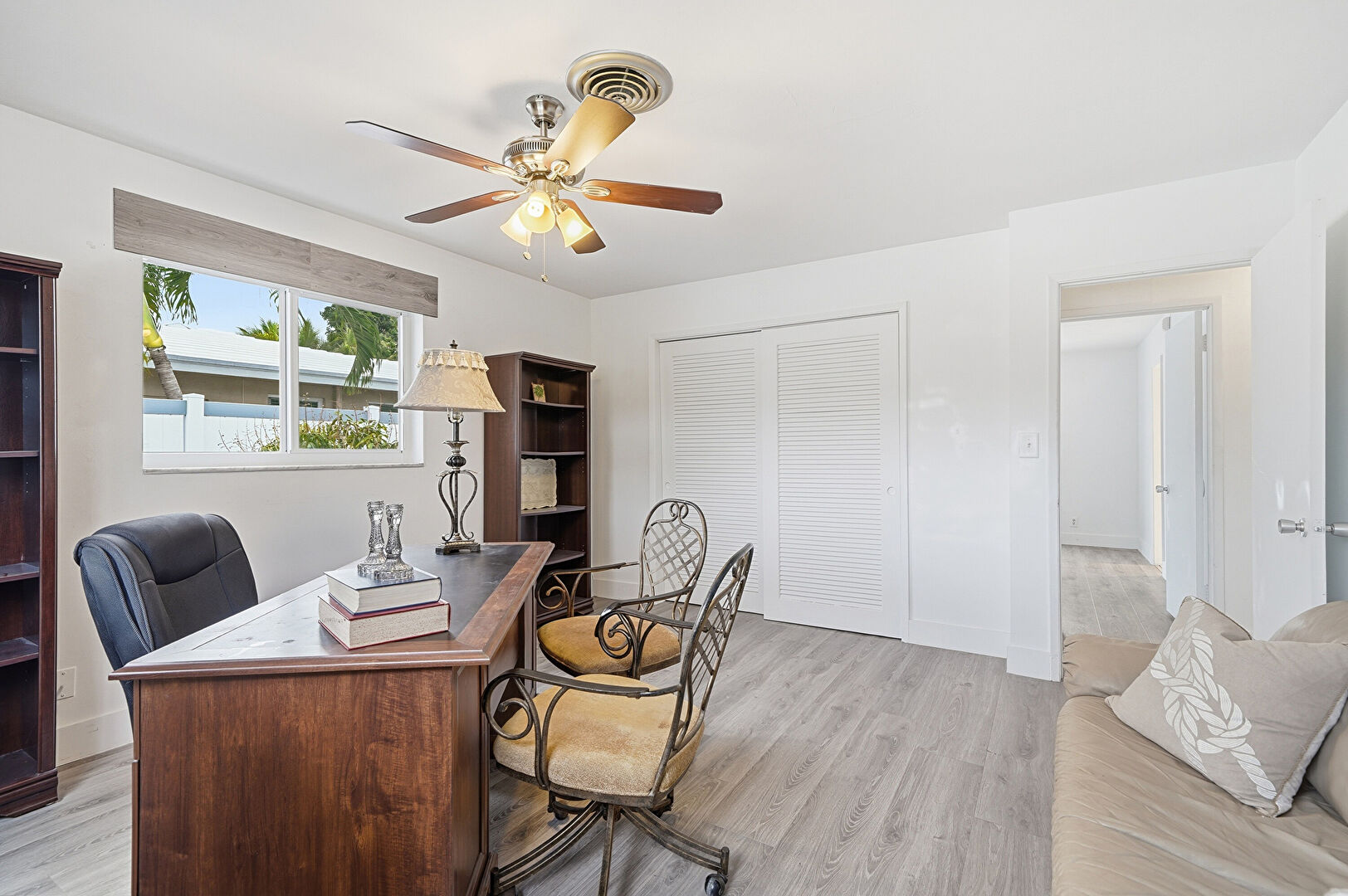 Baseboards Wall, Ceiling Fan, Drywall, Natural Light, Office Area, Vent, Wood Finish Floor, Baseboards Wall, Natural Light