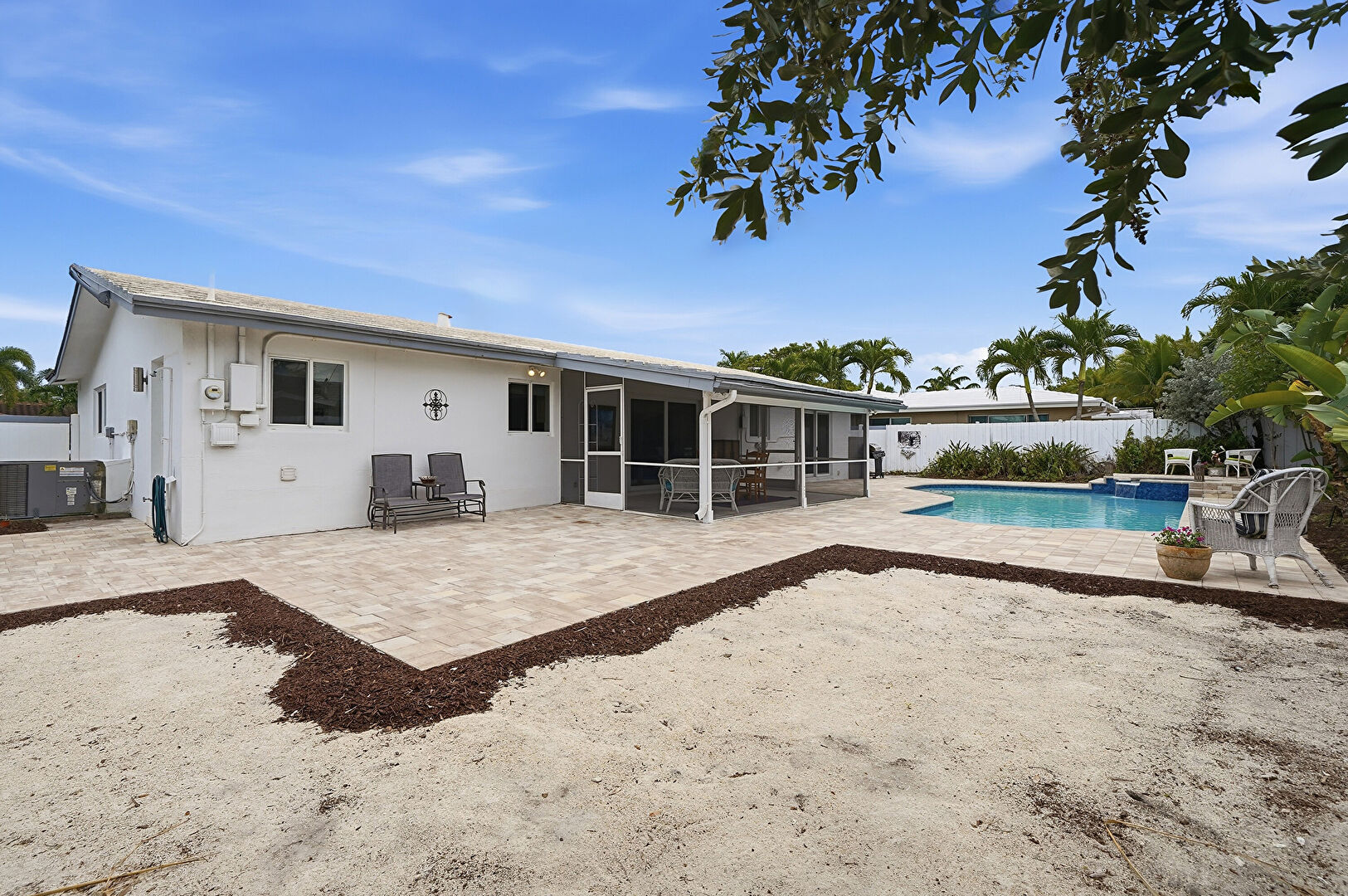 Central Ac, Downspout, Electric Meter, Gutters, Patio, Pool, Pool Hot Tub Combo, Stucco Siding, Sunroom, Fence