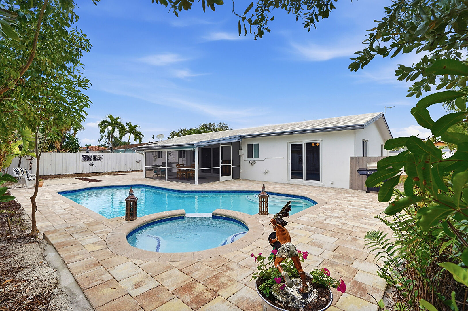Fence, Grill, Hot Tub, Patio, Pool, Pool Hot Tub Combo, Sunroom, Hot Tub, Patio, Pool, Pool Hot Tub Combo, Sunroom
