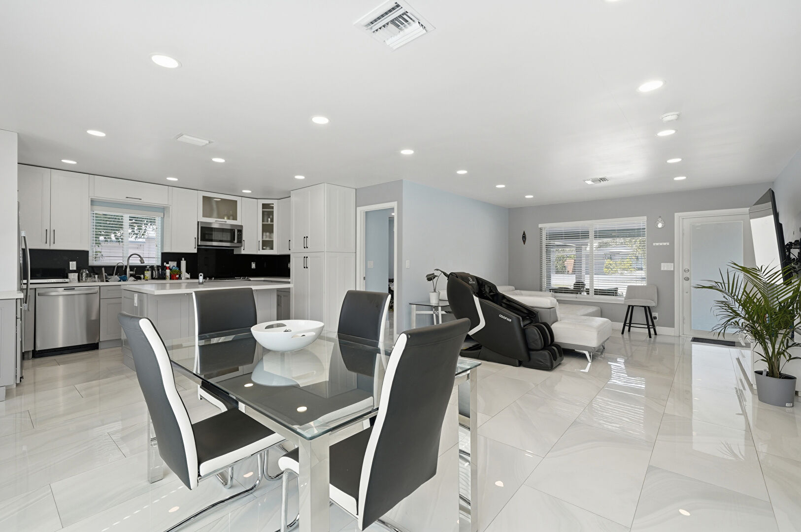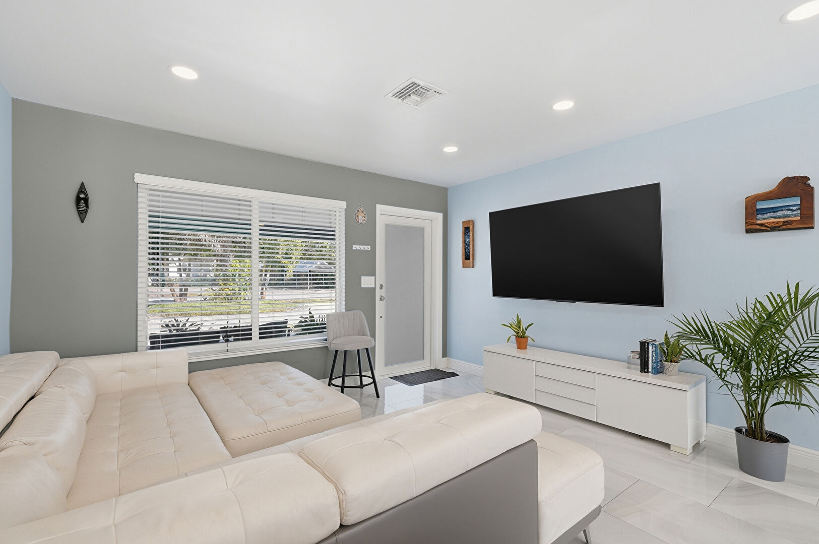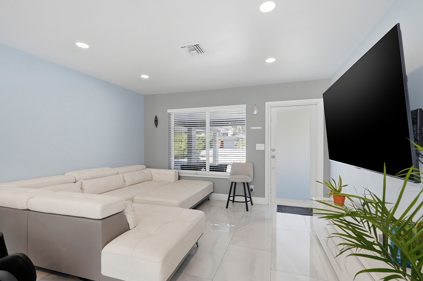Ceiling Fan, Drywall, Natural Light, Recessed Lighting, Tile Floor, Vent, Baseboards Wall, Ceiling Fan
