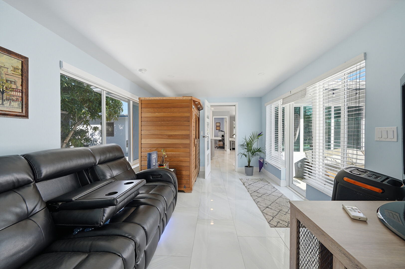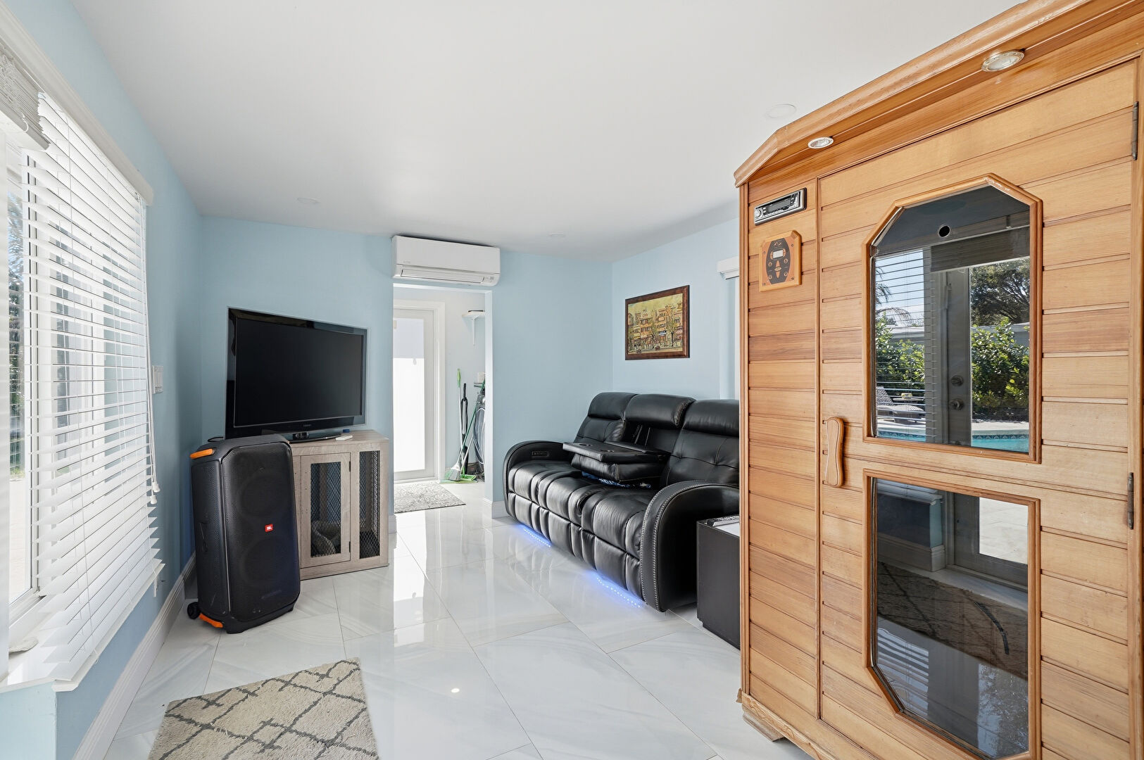 Baseboards Wall, Drywall, Natural Light, Sauna, Tile Floor, Wall Mounted Ac, Baseboards Wall, Drywall, Natural Light