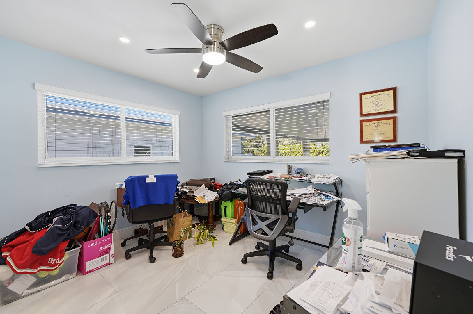 Baseboards Wall, Ceiling Fan, Closet, Drywall, Natural Light, Office Area, Recessed Lighting, Tile Floor, Vent, Baseboards Wall, Ceiling Fan