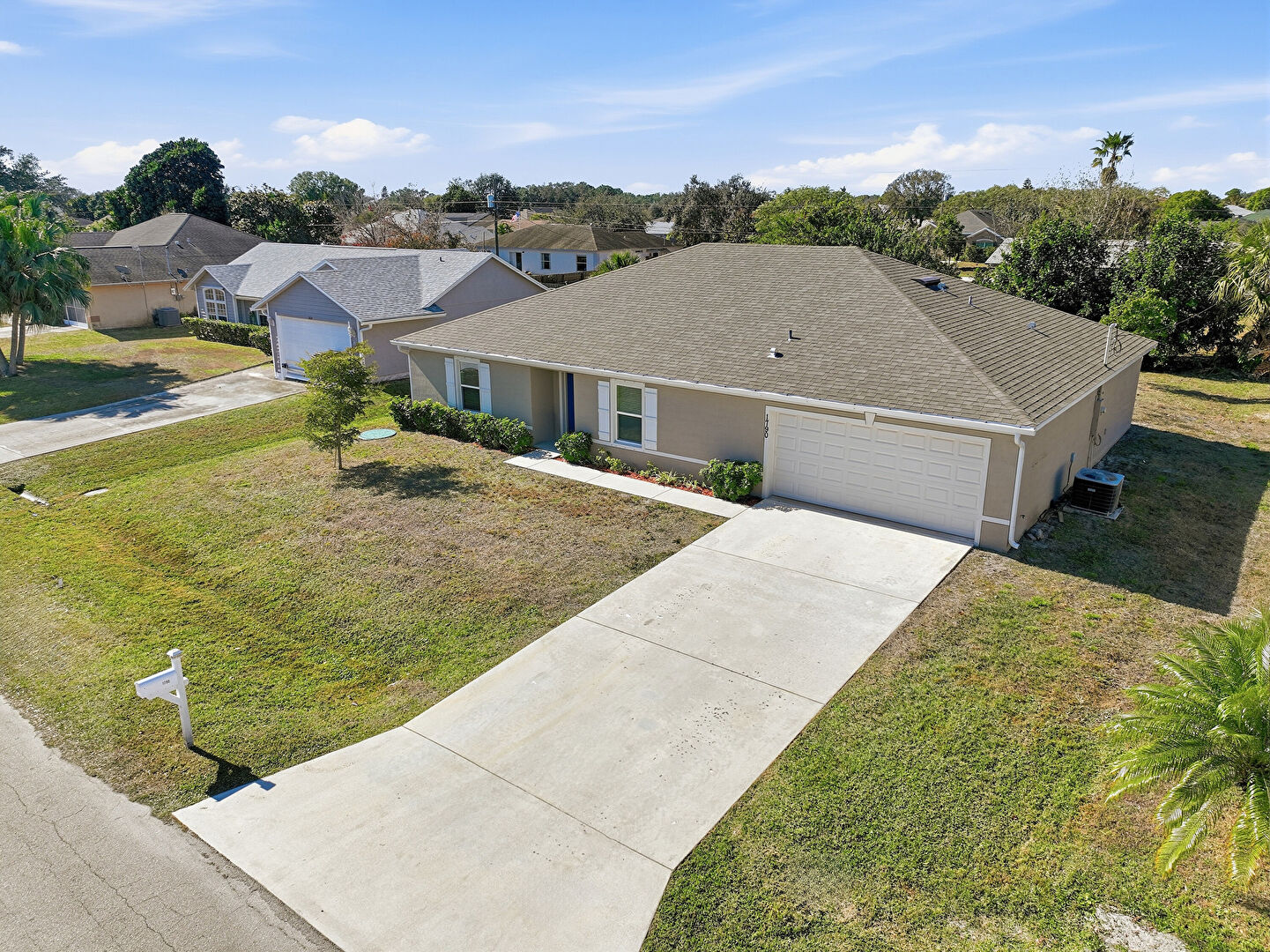 Central Ac, Downspout, Driveway, Gutters, Lawn, Residential View, Shingle Roof, Stucco Siding, Woods View, Downspout, Driveway, Shingle Roof, Stucco Siding