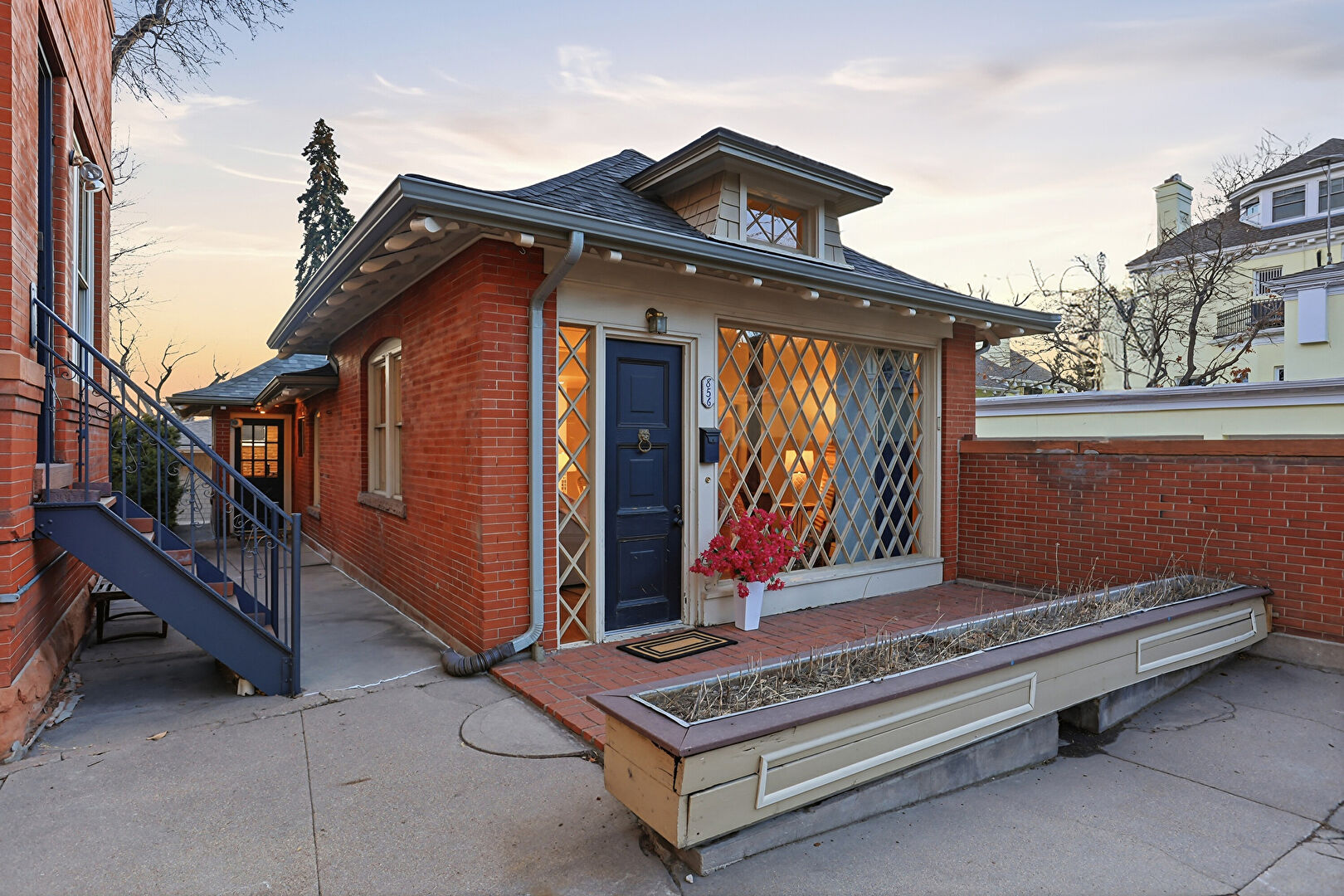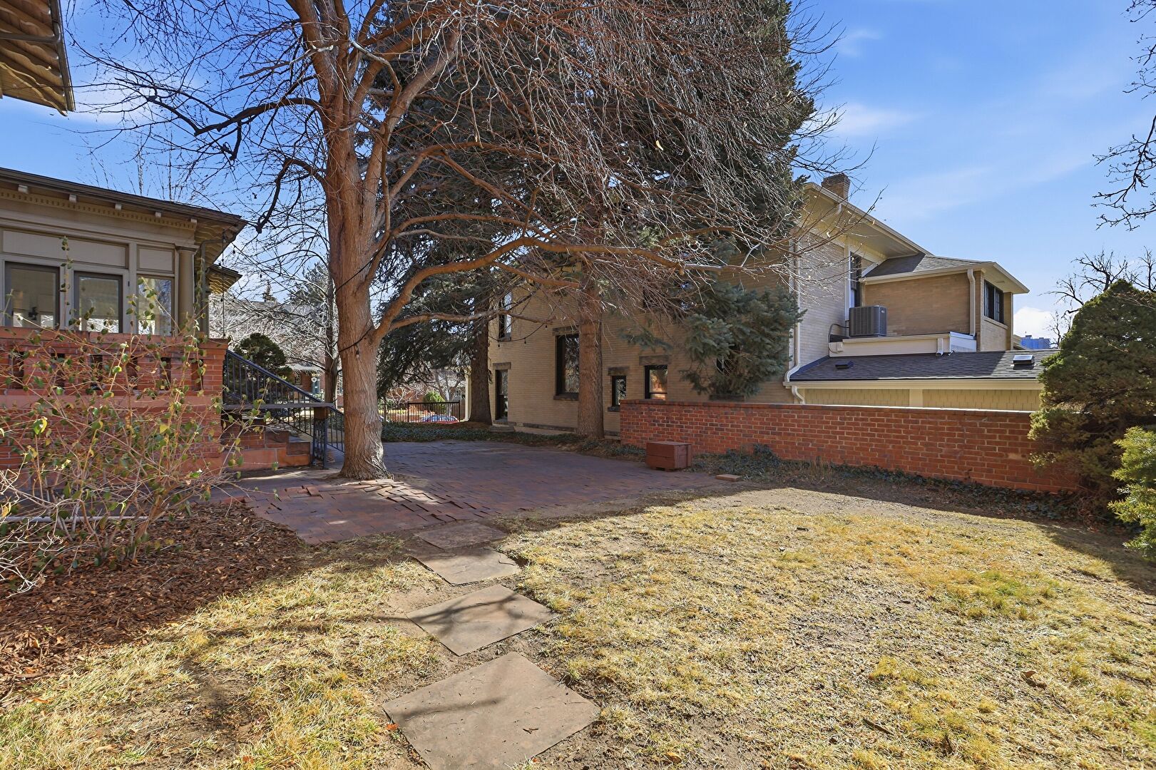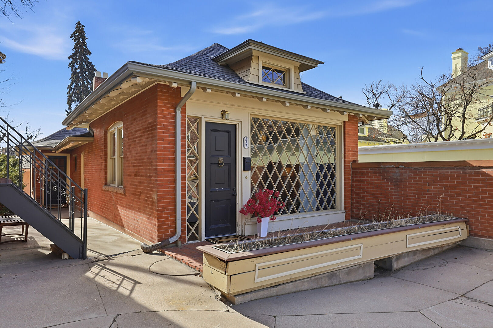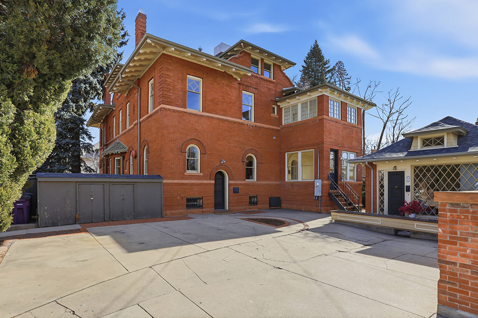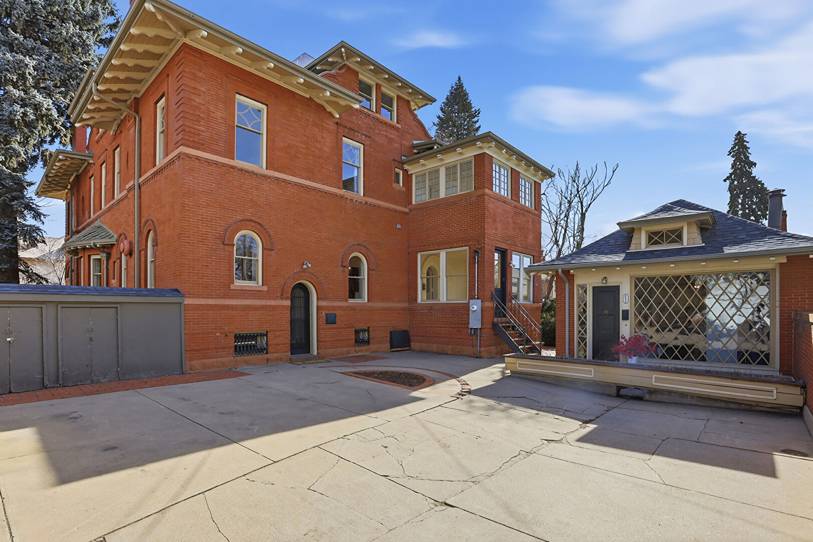 Brick Siding, Chimney, Dormer Roof, Downspout, Electric Meter, Gutters, Outdoor Structure, Patio, Brick Siding, Electric Meter, Gutters, Parking Pad