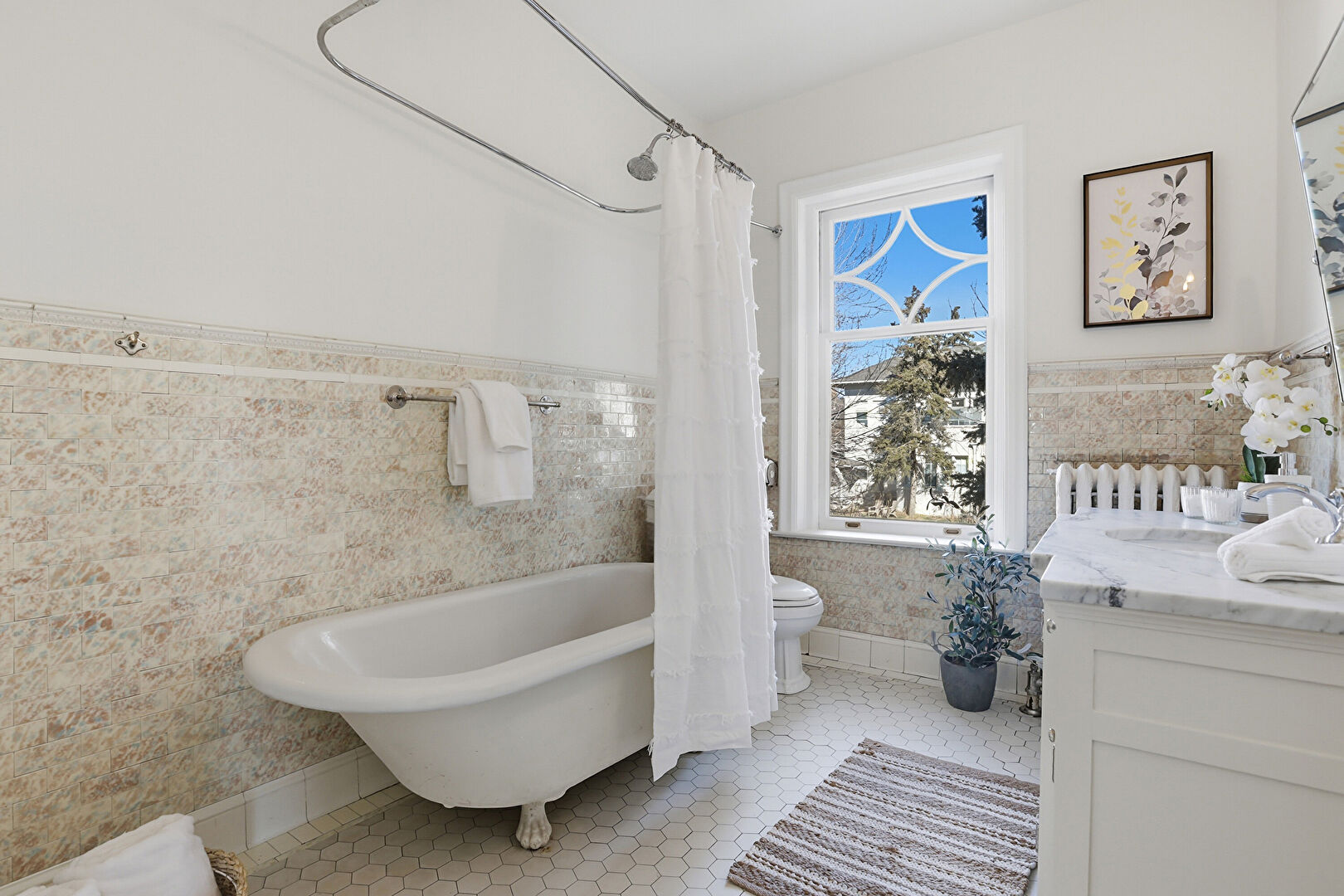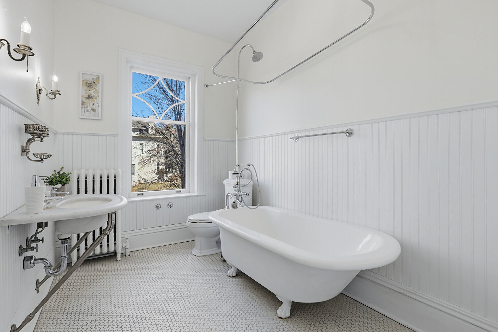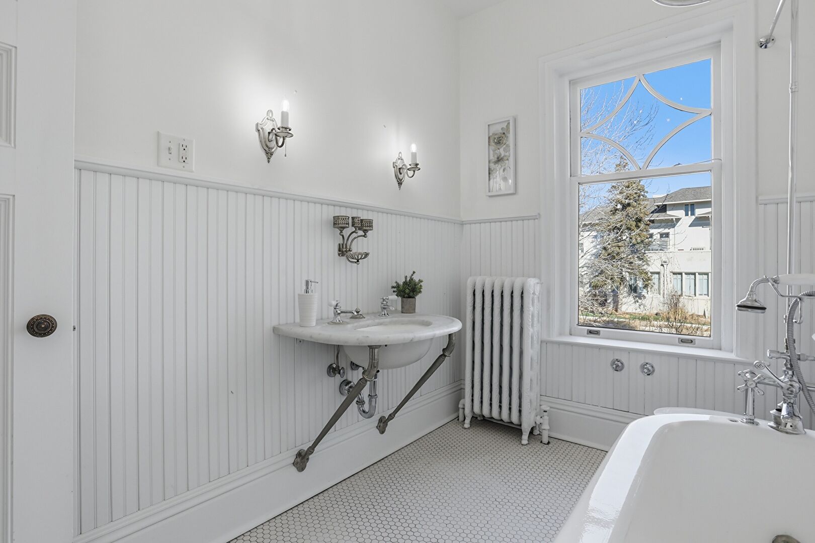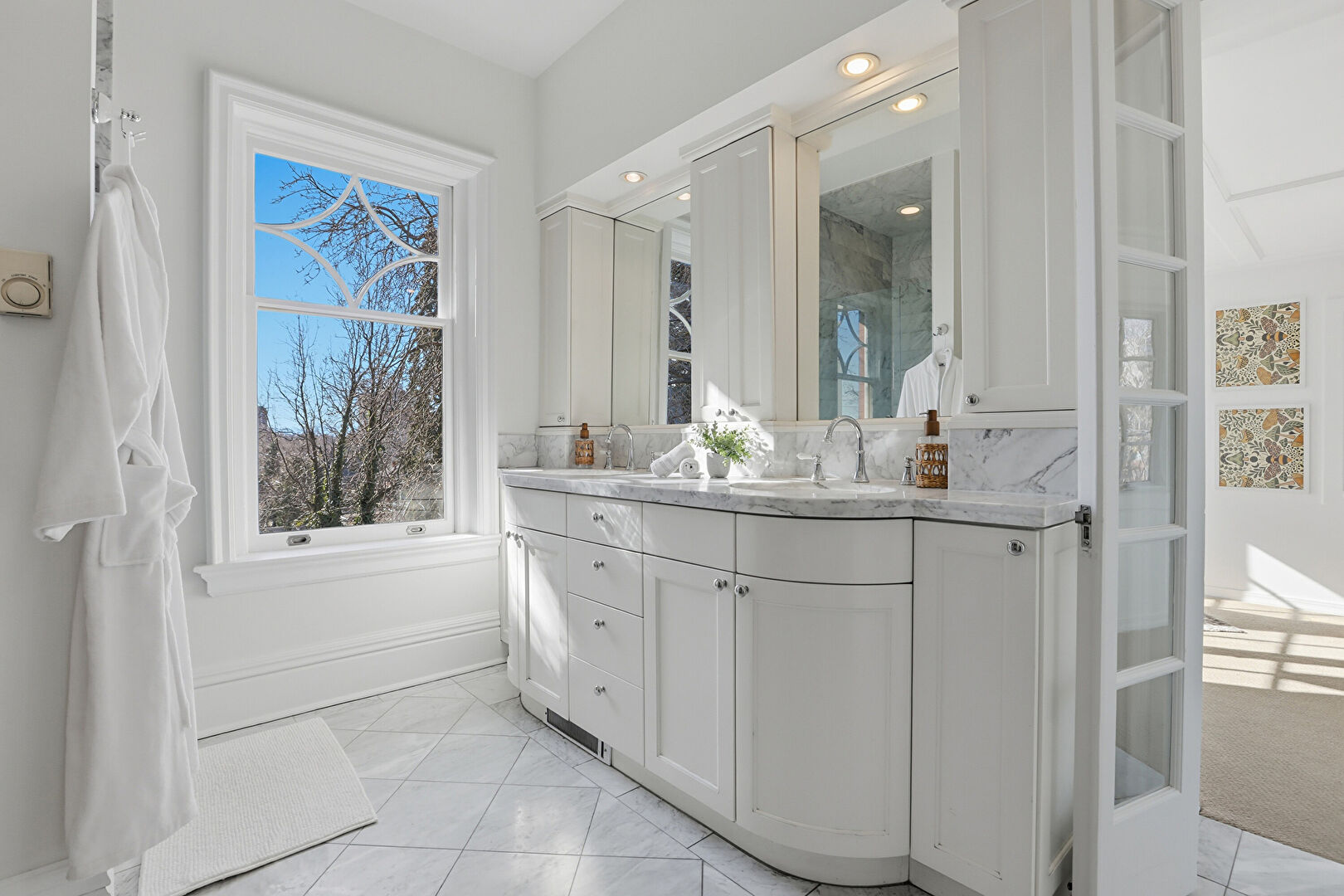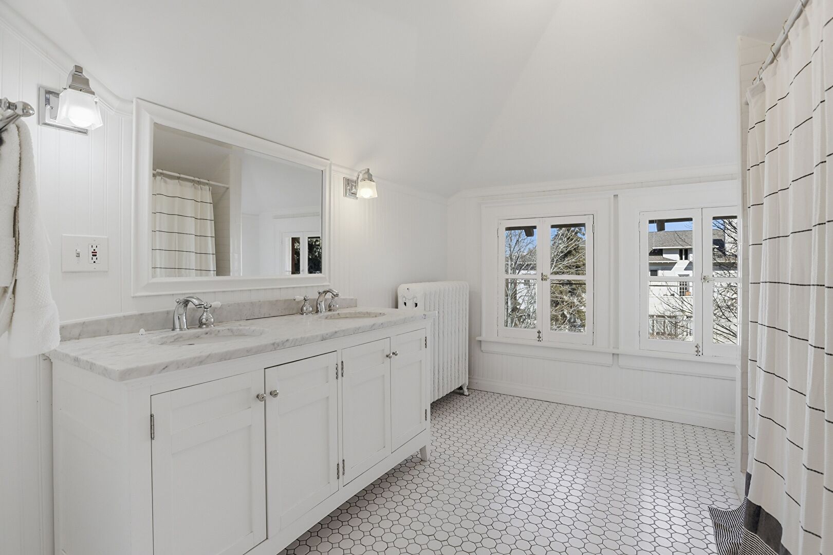 Baseboards Wall, Carpet, Cathedral Ceiling, Combined Bath Shower, Double Vanity, Drywall, Full Bathroom, Half Bathroom, Marble Finish Floor, Natural Light, Paneling Wall, Radiator, Recessed Lighting, Tile Floor, Tile Wall, Vanity, Vaulted Ceiling, Vent, Wainscot Wall, Combined Bath Shower, Drywall, Full Bathroom, Half Bathroom, Natural Light, Radiator, Vinyl Floor, Walk In Closet