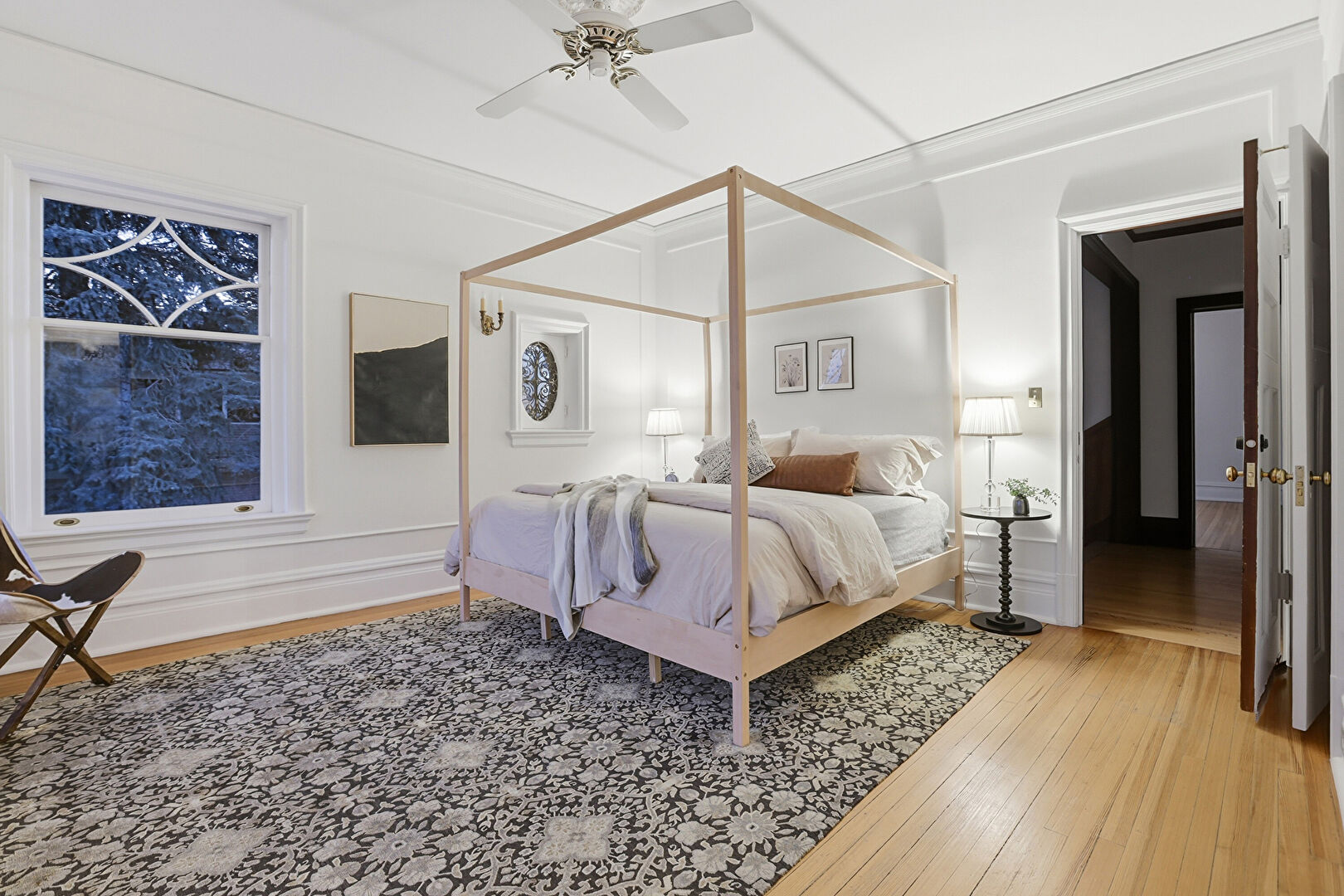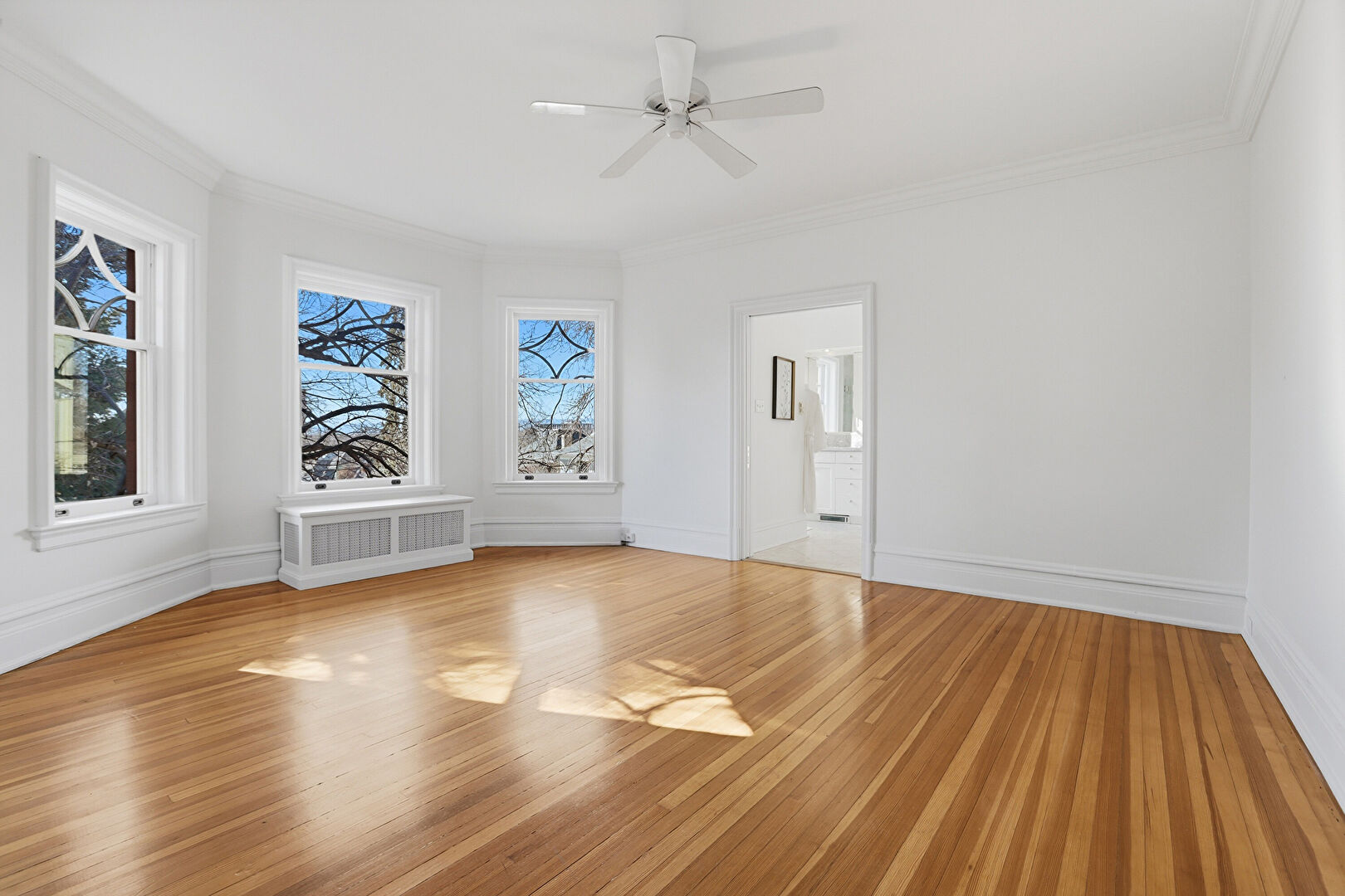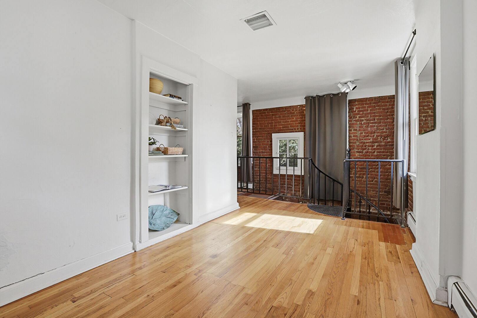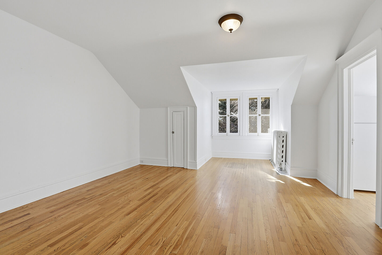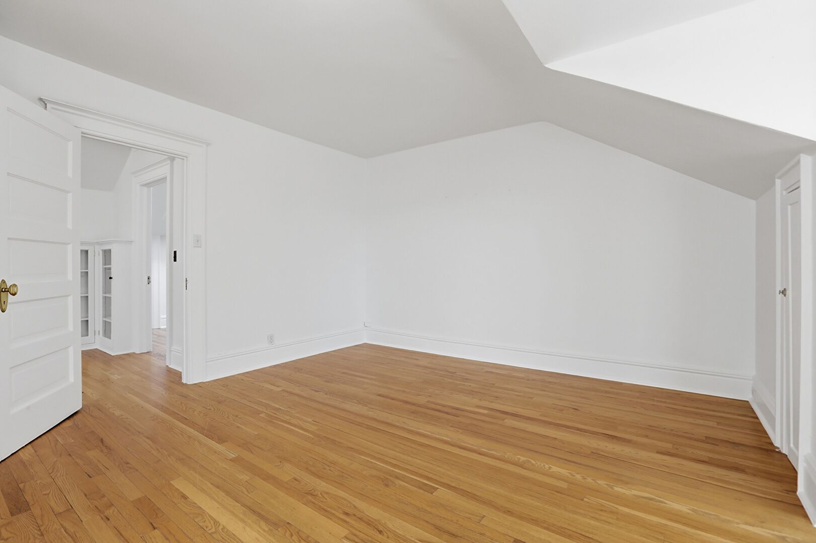 Baseboard Radiator, Baseboards Wall, Bonus Room, Built In Shelves, Ceiling Fan, Crown Molding, Drywall, Natural Light, Radiator, Skylight, Vaulted Ceiling, Vent, Wood Finish Floor, Baseboards Wall, Bonus Room, Brick Wall, Ceiling Fan, Drywall, Natural Light, Paneling Wall, Radiator, Skylight, Wood Finish Floor