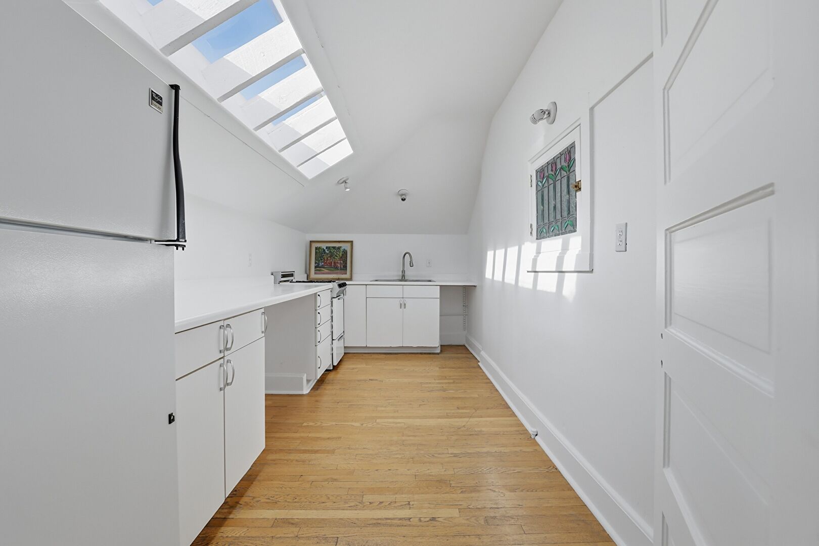 Baseboards Wall, Drywall, Natural Light, Skylight, Vaulted Ceiling, Vent, Wood Finish Floor, Drywall, Loft