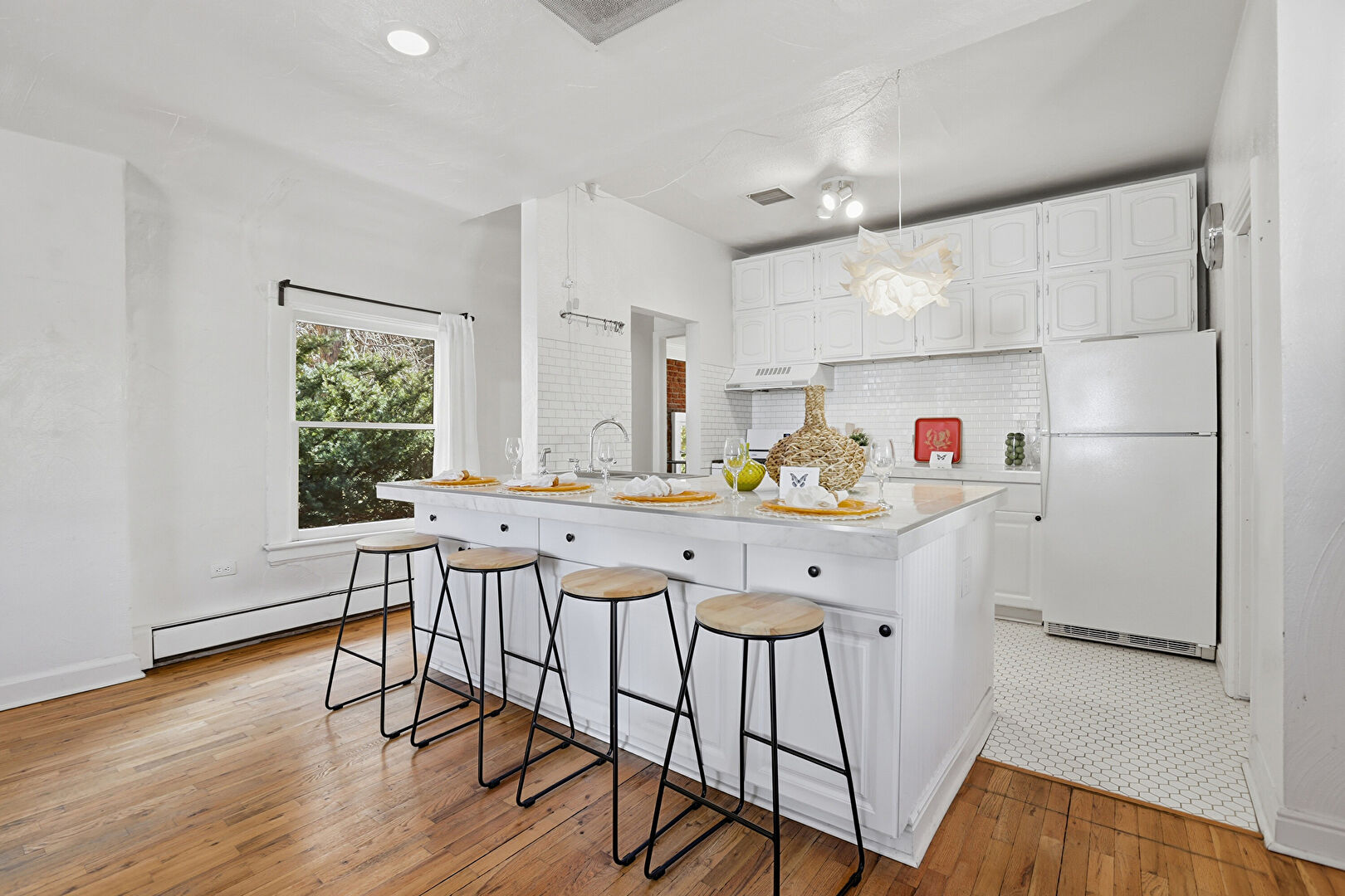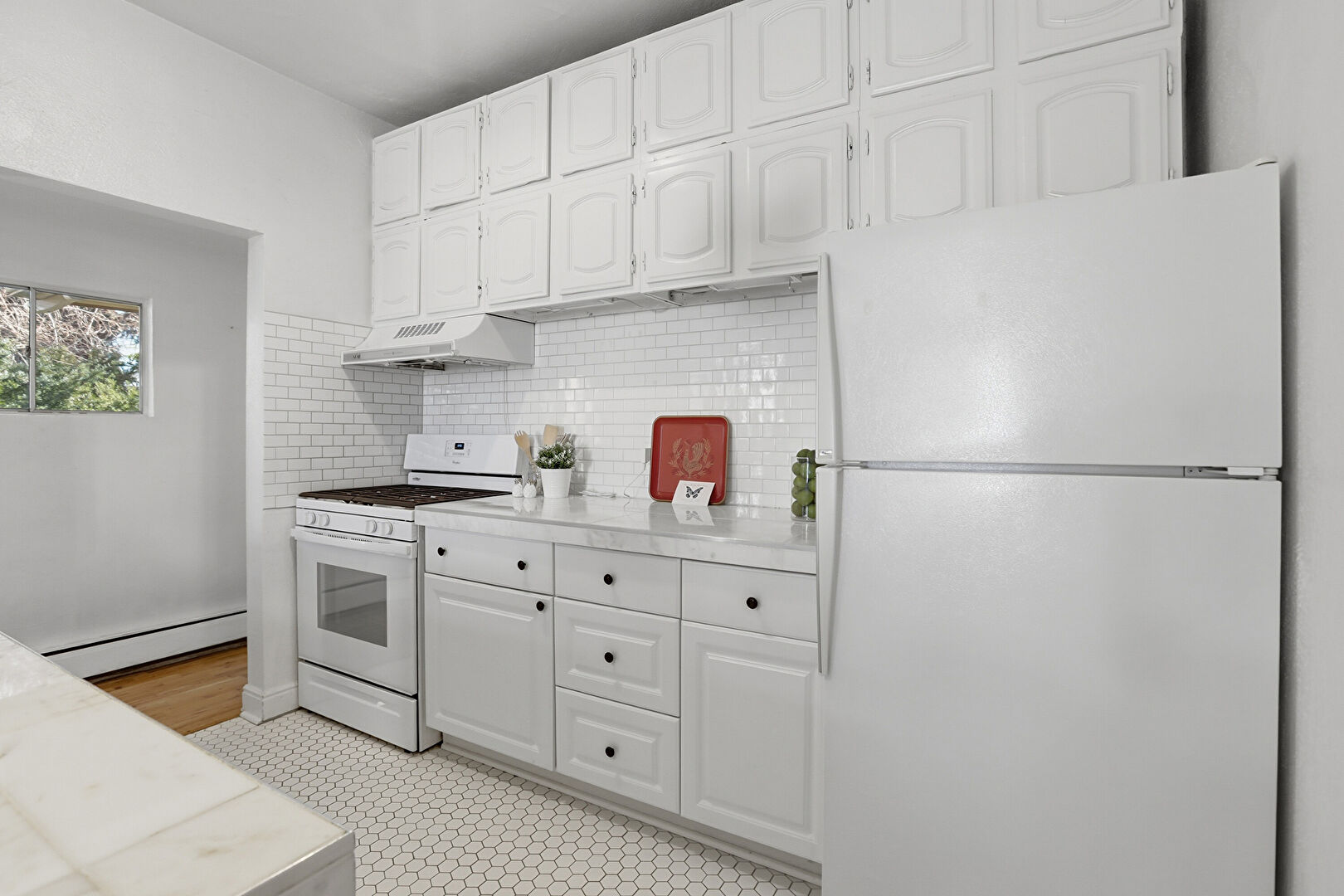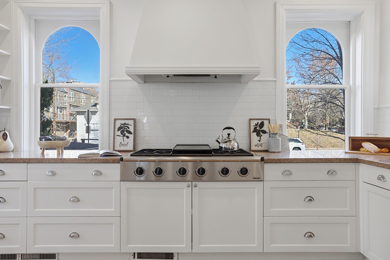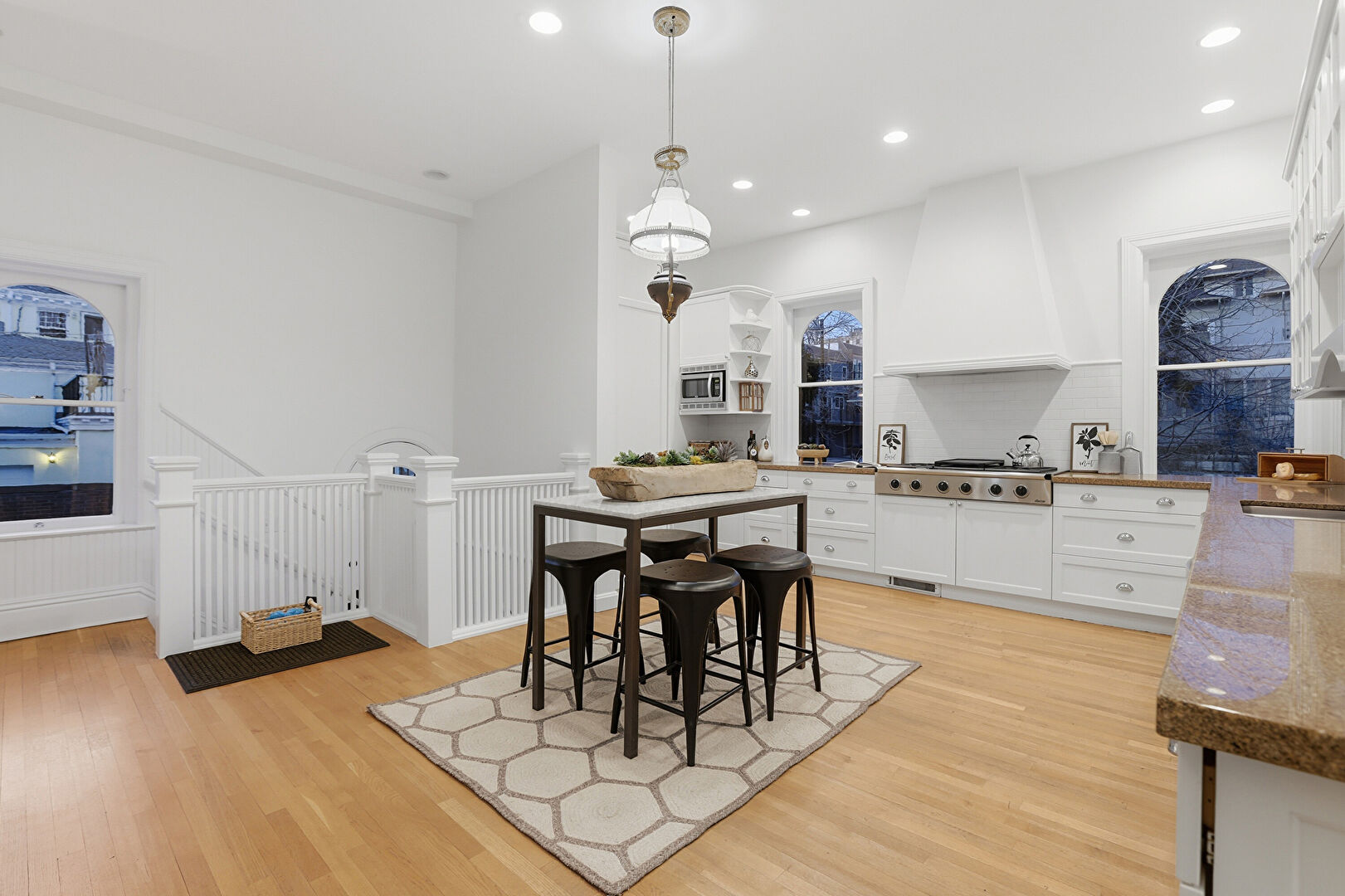 Arched Cabinets, Baseboard Radiator, Baseboards Wall, Crown Molding Cabinets, Double Oven, Drywall, Glass Insert Cabinets, Kitchen Bar, Kitchen Island, Kitchen Peninsula, Natural Light, One Wall Kitchen, Open Shelves, Opens To Living Area, Pendant Lighting, Raised Cabinets, Recessed Lighting, Shaker Cabinets, Skylight, Stone Countertops, Tile Floor, Trash Compactor, Vaulted Ceiling, Vent, Visible Hinge Cabinets, Wood Finish Floor, Baseboards Wall, Drywall, Kitchen Island, Natural Light, Open Shelves, Shaker Cabinets, Vent, Visible Hinge Cabinets