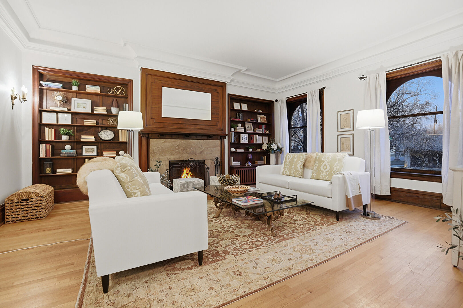 Baseboards Wall, Built In Shelves, Drywall, Fireplace, Notable Chandelier, Wood Finish Floor, Crown Molding, Wood Finish Floor