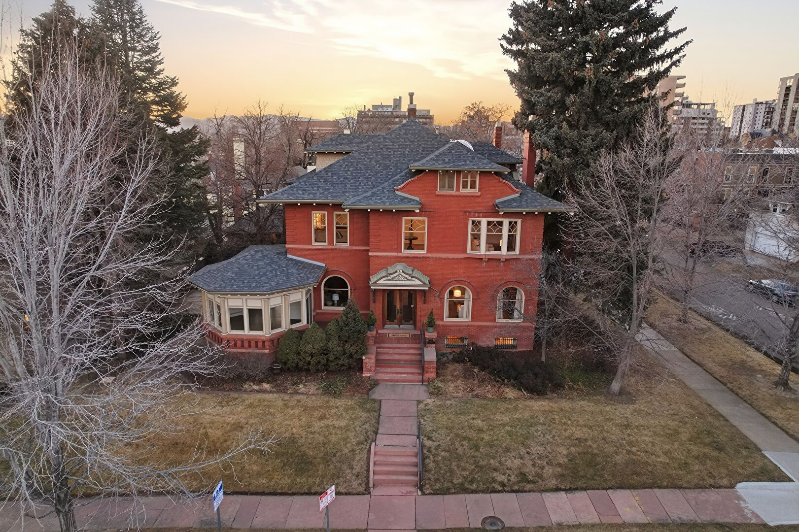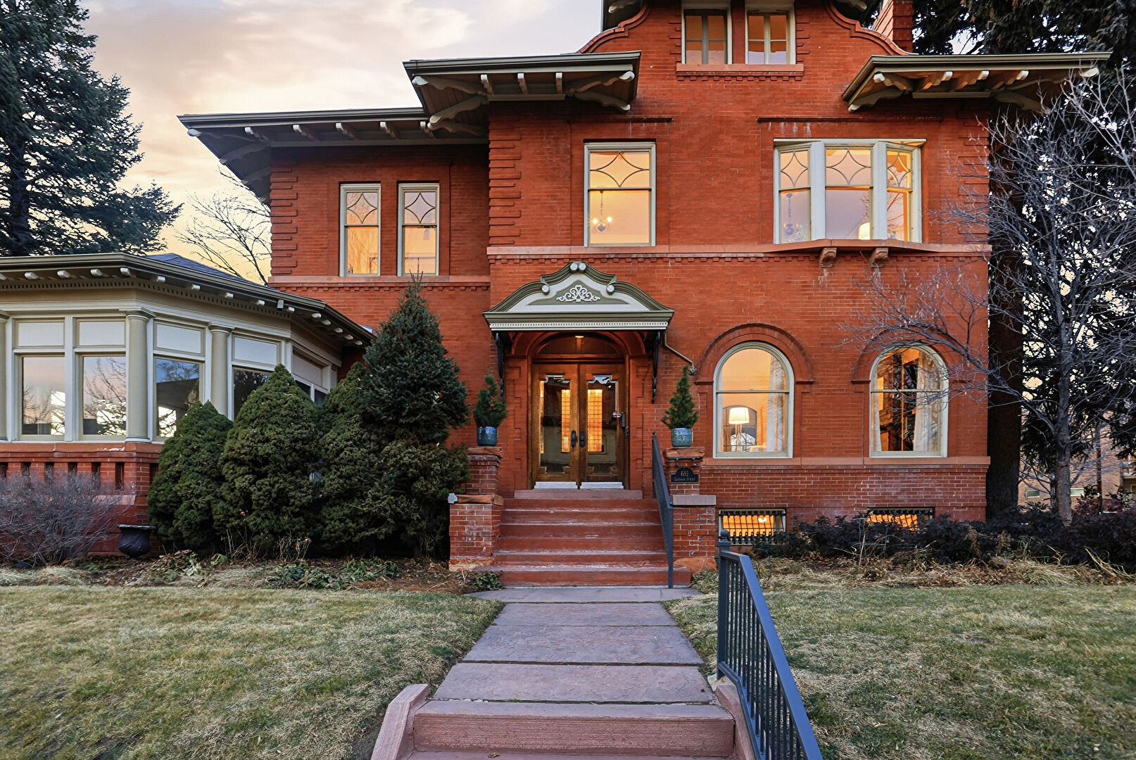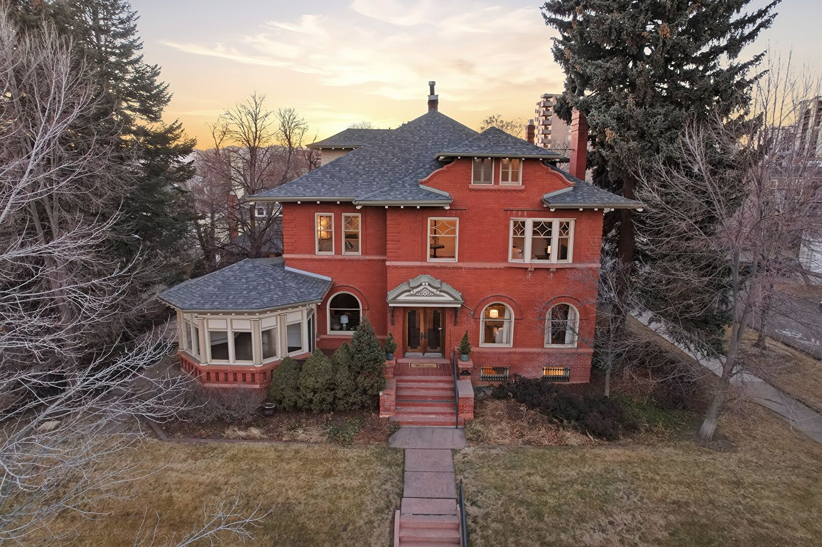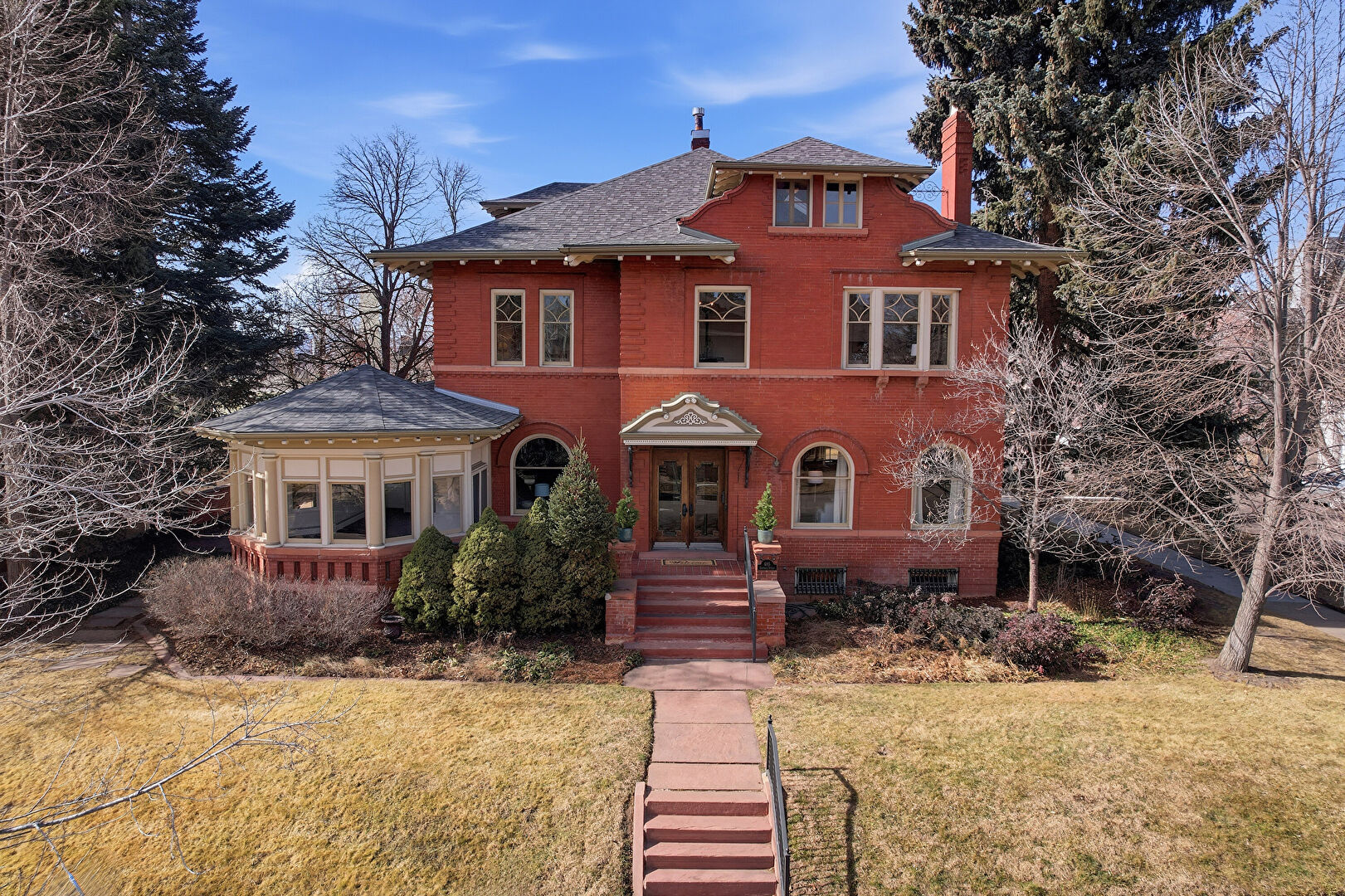 Brick Siding, Chimney, French Doors, Lawn, Mountain View, Residential View, Shingle Roof, Stoop, City View, Mountain View, Shingle Roof, Stoop
