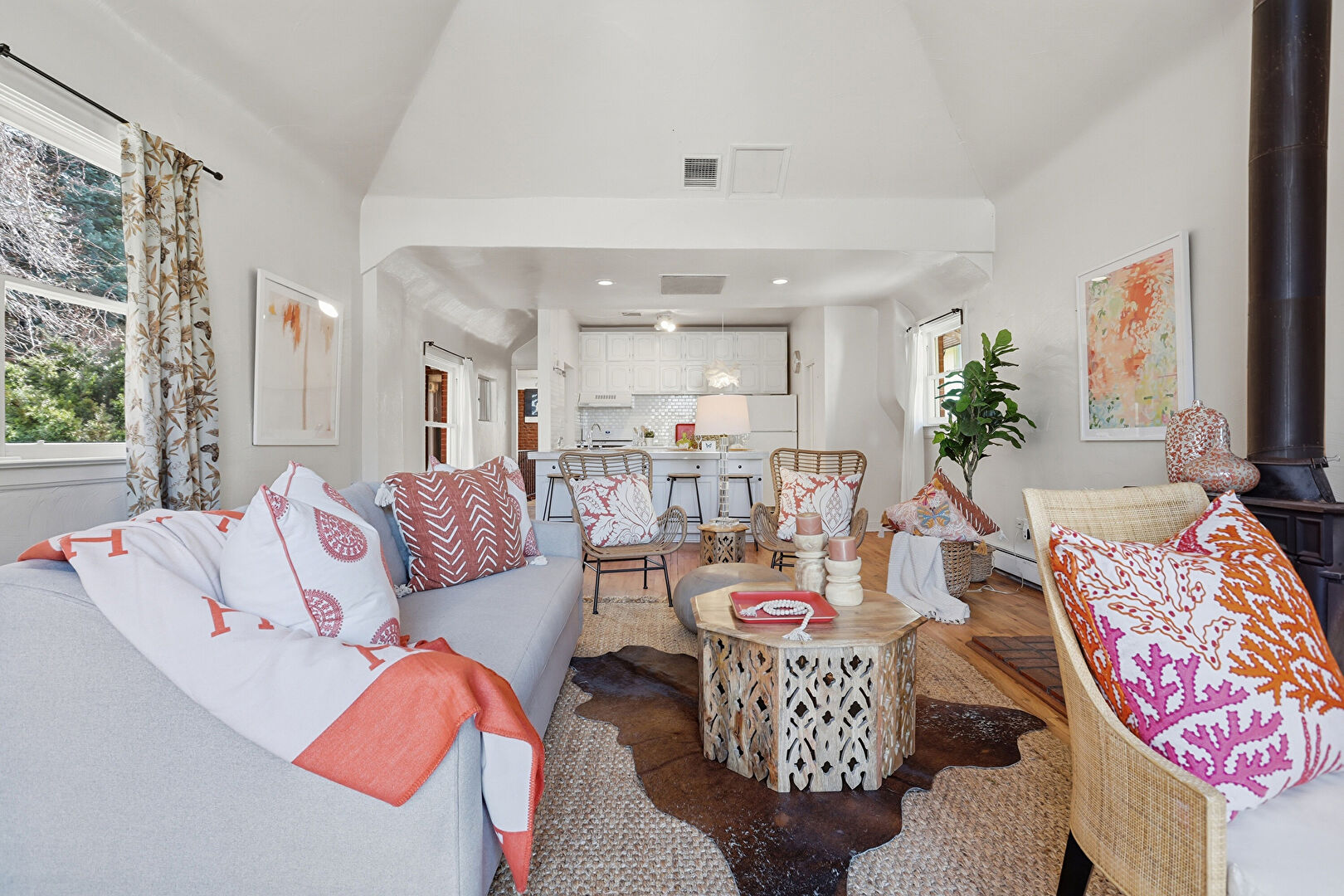 Baseboard Radiator, Baseboards Wall, Built In Shelves, Crown Molding, Drywall, Fireplace, High Ceiling, L Shaped Kitchen, Natural Light, Notable Chandelier, Radiator, Recessed Lighting, Vaulted Ceiling, Vent, Wood Finish Floor, Wood Stove, Baseboard Radiator, Baseboards Wall, Crown Molding, Drywall, Fireplace, Natural Light, Wood Finish Floor, Wood Stove