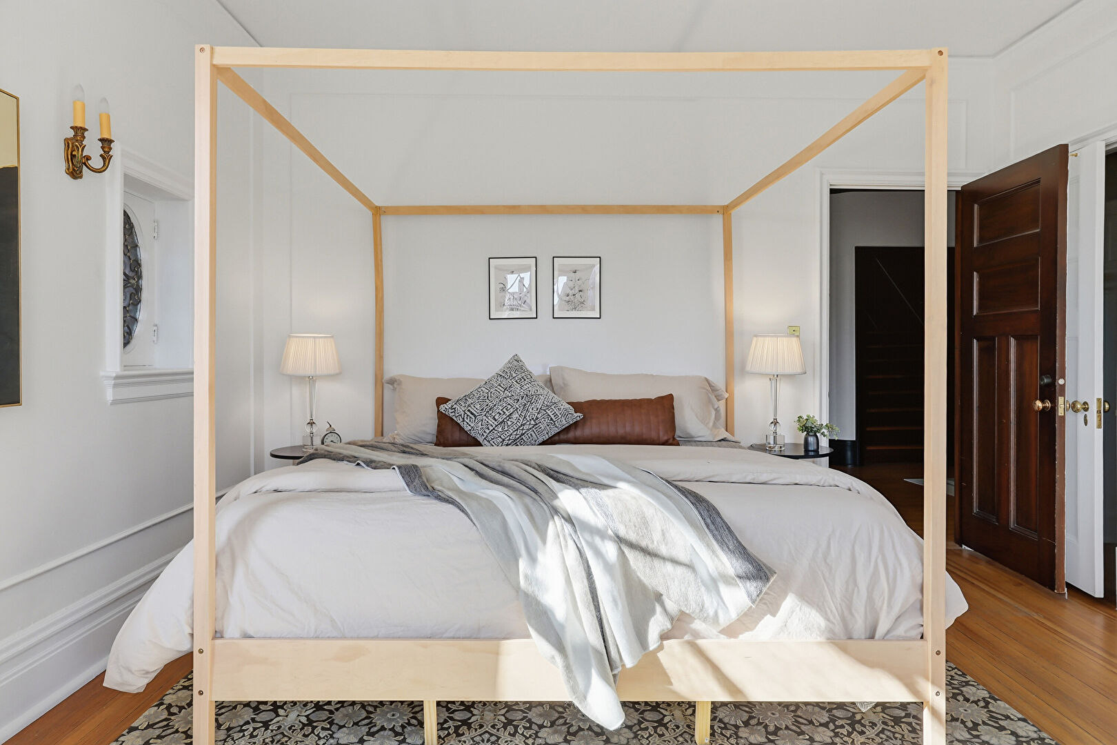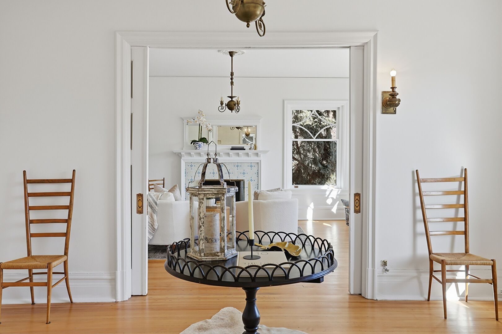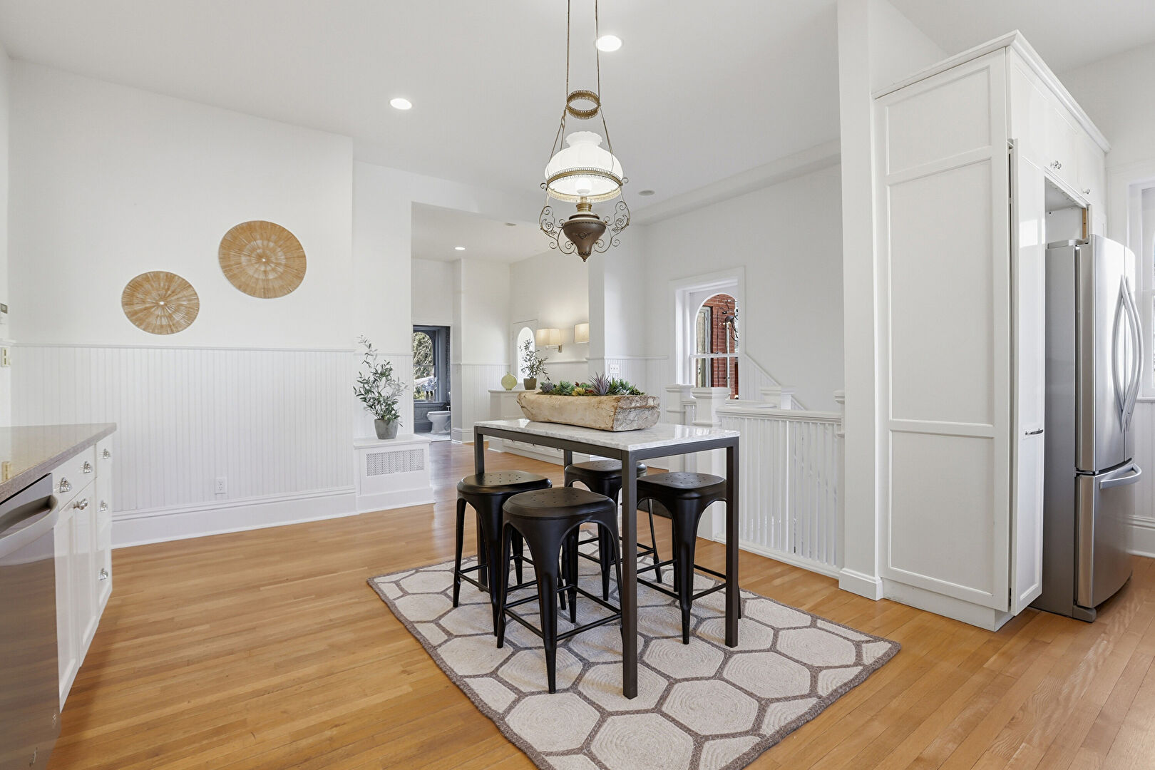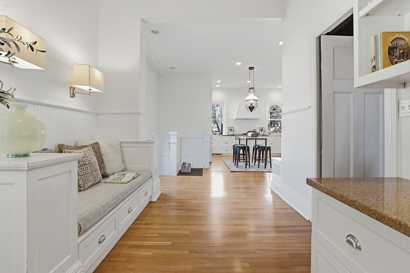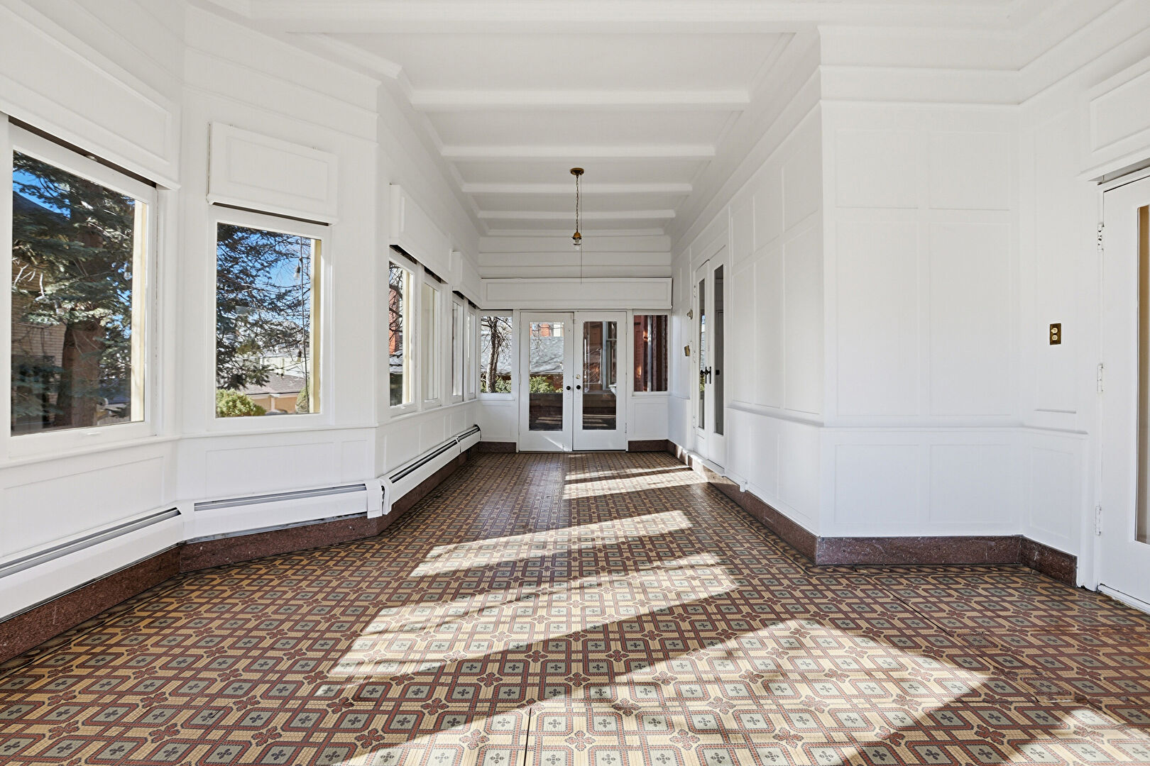 Arched Walkways, Crown Molding, Decorative Columns, Drywall, High Ceiling, Natural Light, Paneling Wall, Stairs, Wainscot Wall, Wood Finish Floor, Wood Wall, Natural Light, Wood Finish Floor