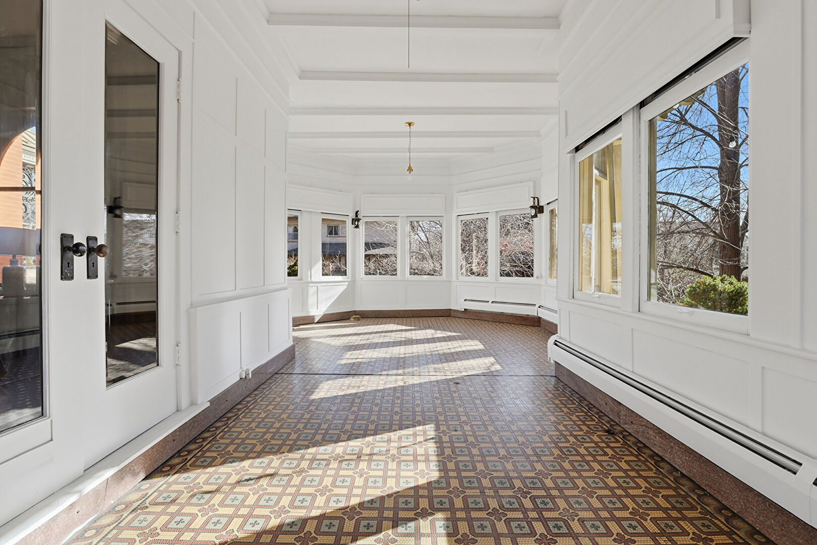 Brick Siding, Chimney, French Doors, Gutters, Lawn, Porch, Shingle Roof, Stoop, Sunroom, Brick Siding, French Doors, Gutters, Lawn, Shingle Roof, Stoop