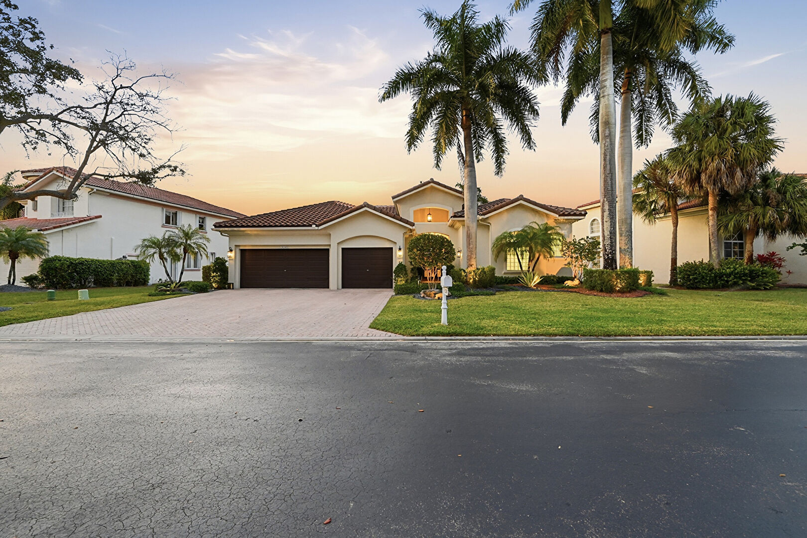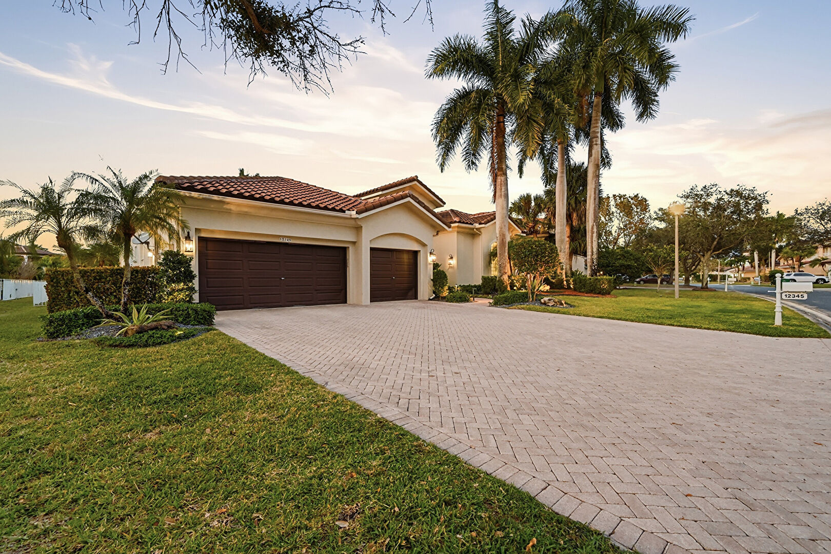 Downspout, Driveway, Fence, Gutters, Lawn, Residential View, Stucco Siding, Tile Roof, Downspout, Driveway, Gutters, Lawn, Residential View