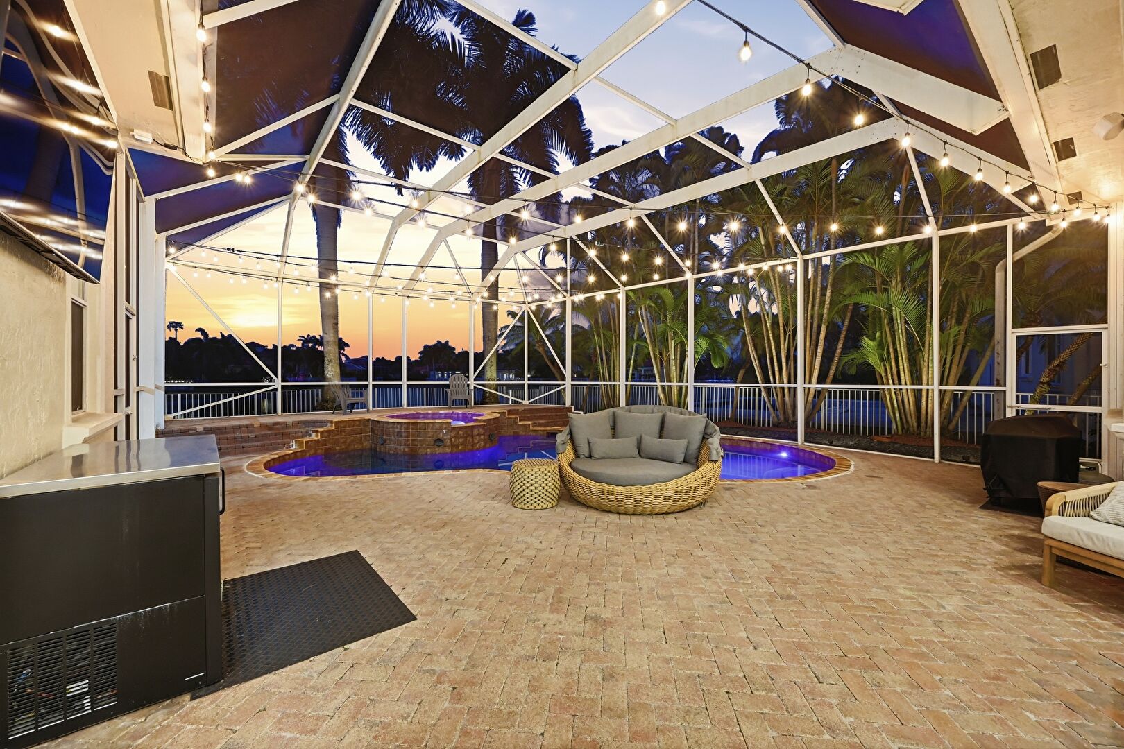 Grill, Hot Tub, Lanai, Outdoor Living Space, Patio, Pool, Sunroom, Ceiling Fan, Pool Hot Tub Combo