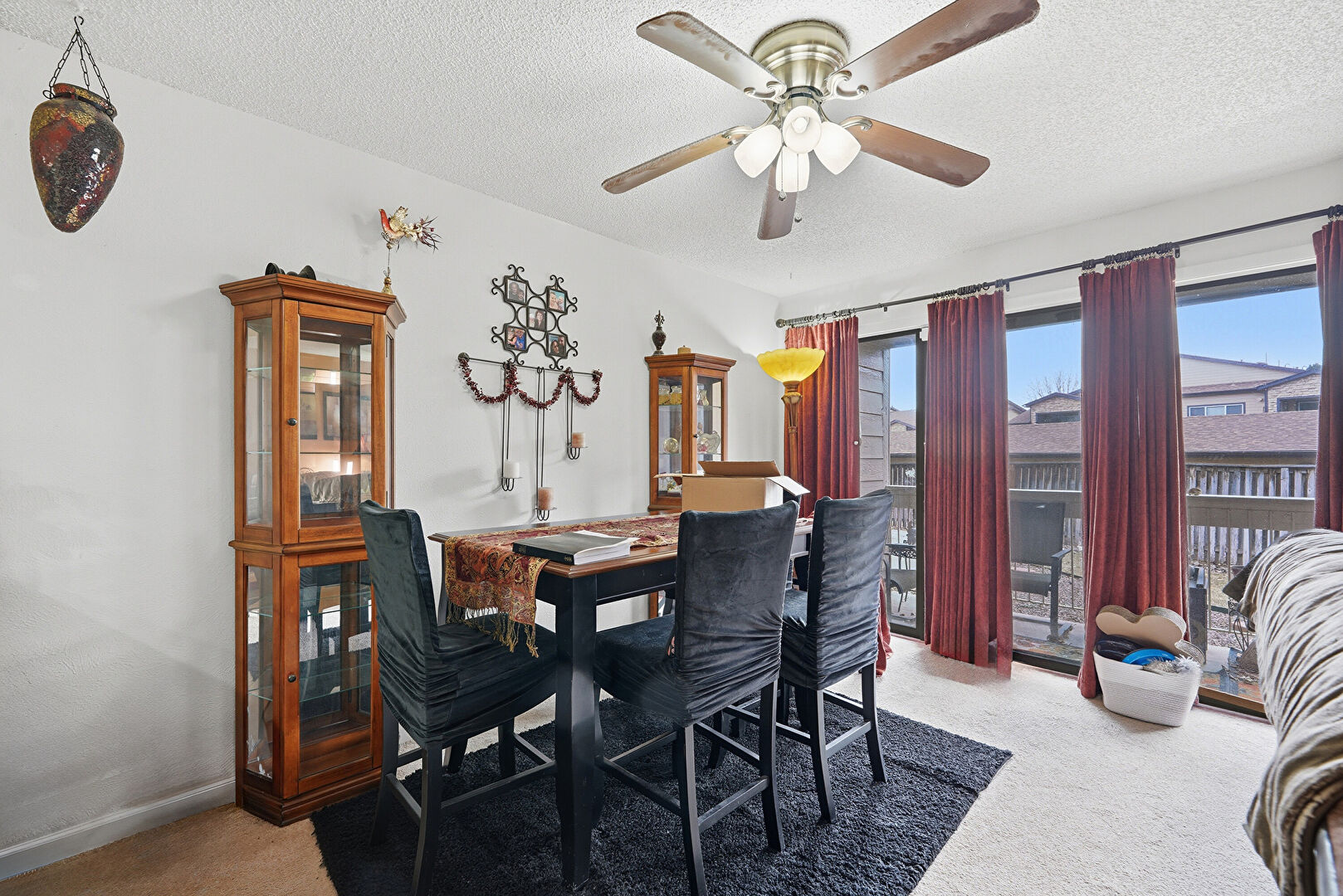 Baseboards Wall, Ceiling Fan, Drywall, Natural Light, Textured Ceiling, Carpet