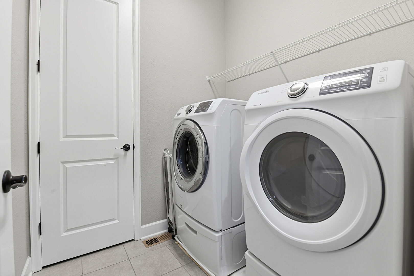 Baseboards Wall, Laundry, Tile Floor, Vent, Textured Wall