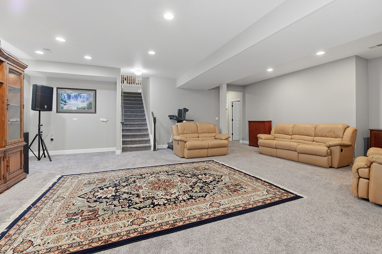 Baseboards Wall, Basement, Carpet, Drywall, Natural Light, Recessed Lighting, Stairs, Vent, Drywall, Recessed Lighting, Stairs