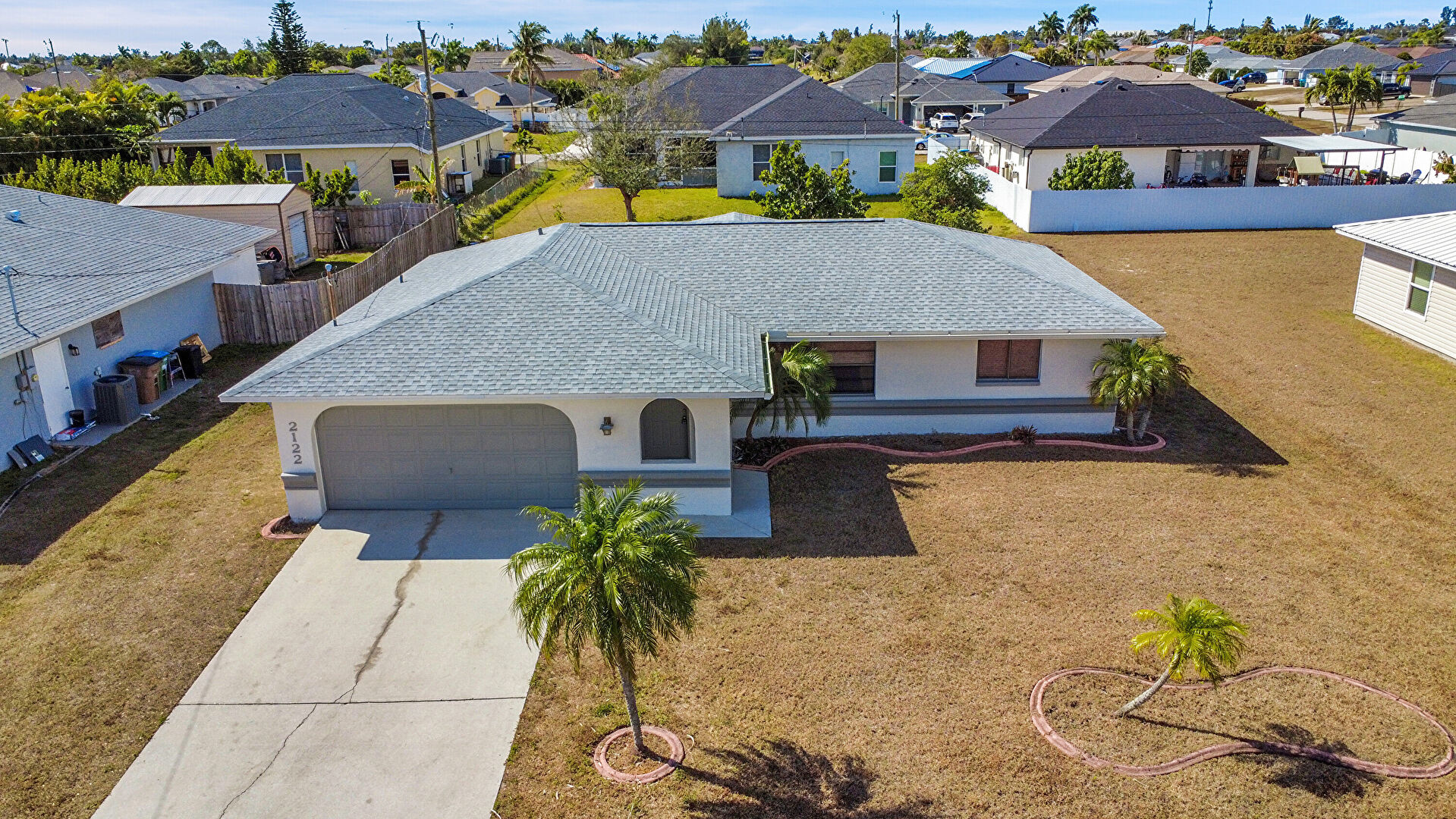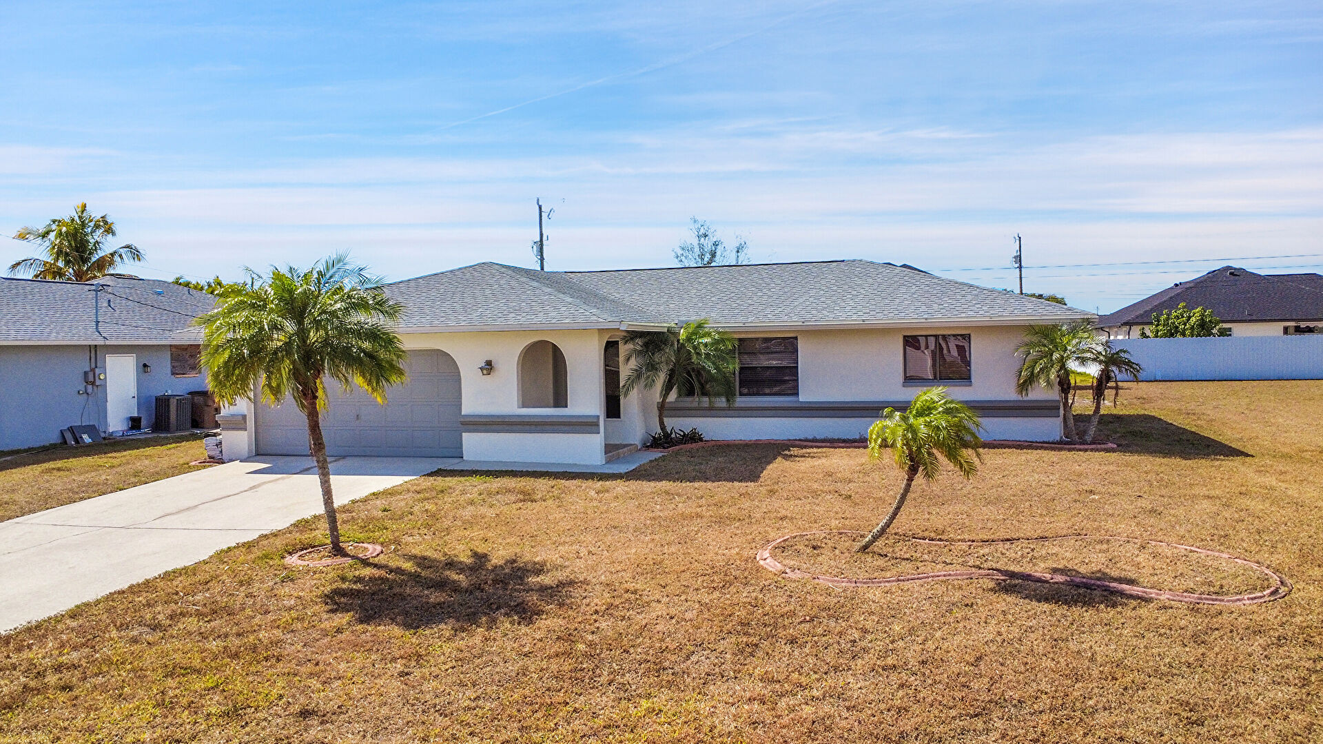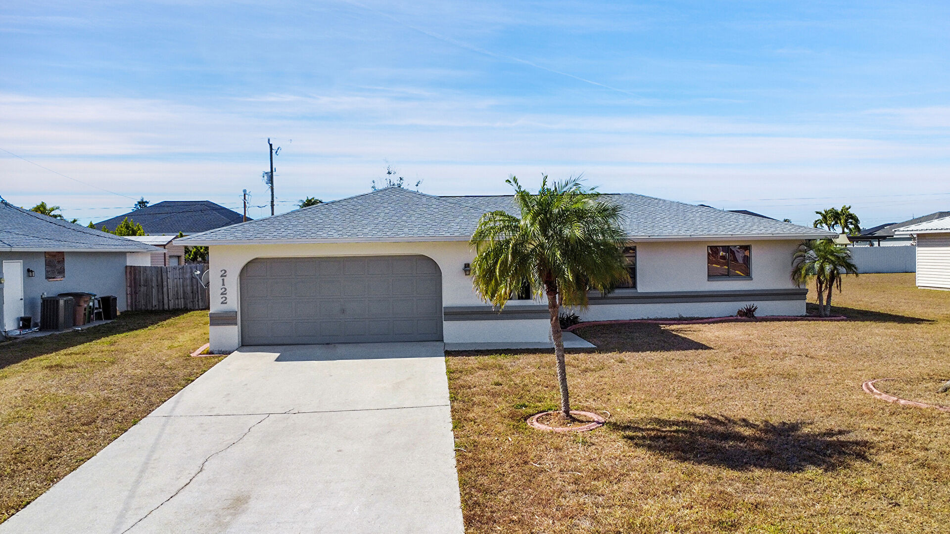 Central Ac, Driveway, Lawn, Porch, Shingle Roof, Stucco Siding, Driveway, Fence, Lawn, Shingle Roof, Stucco Siding