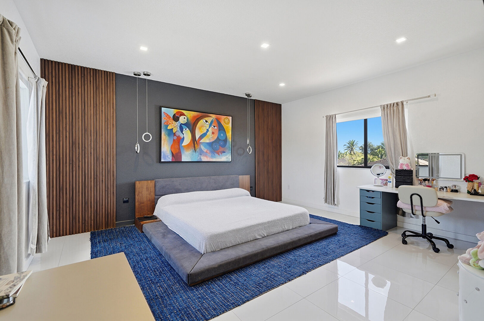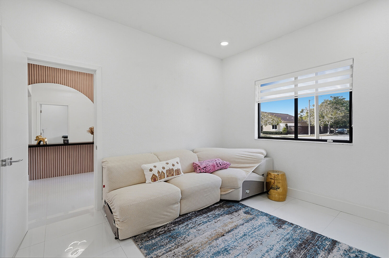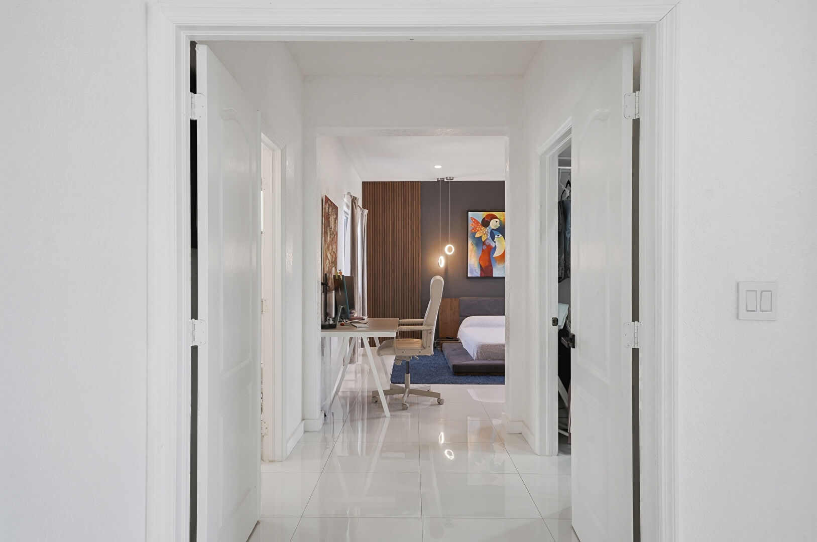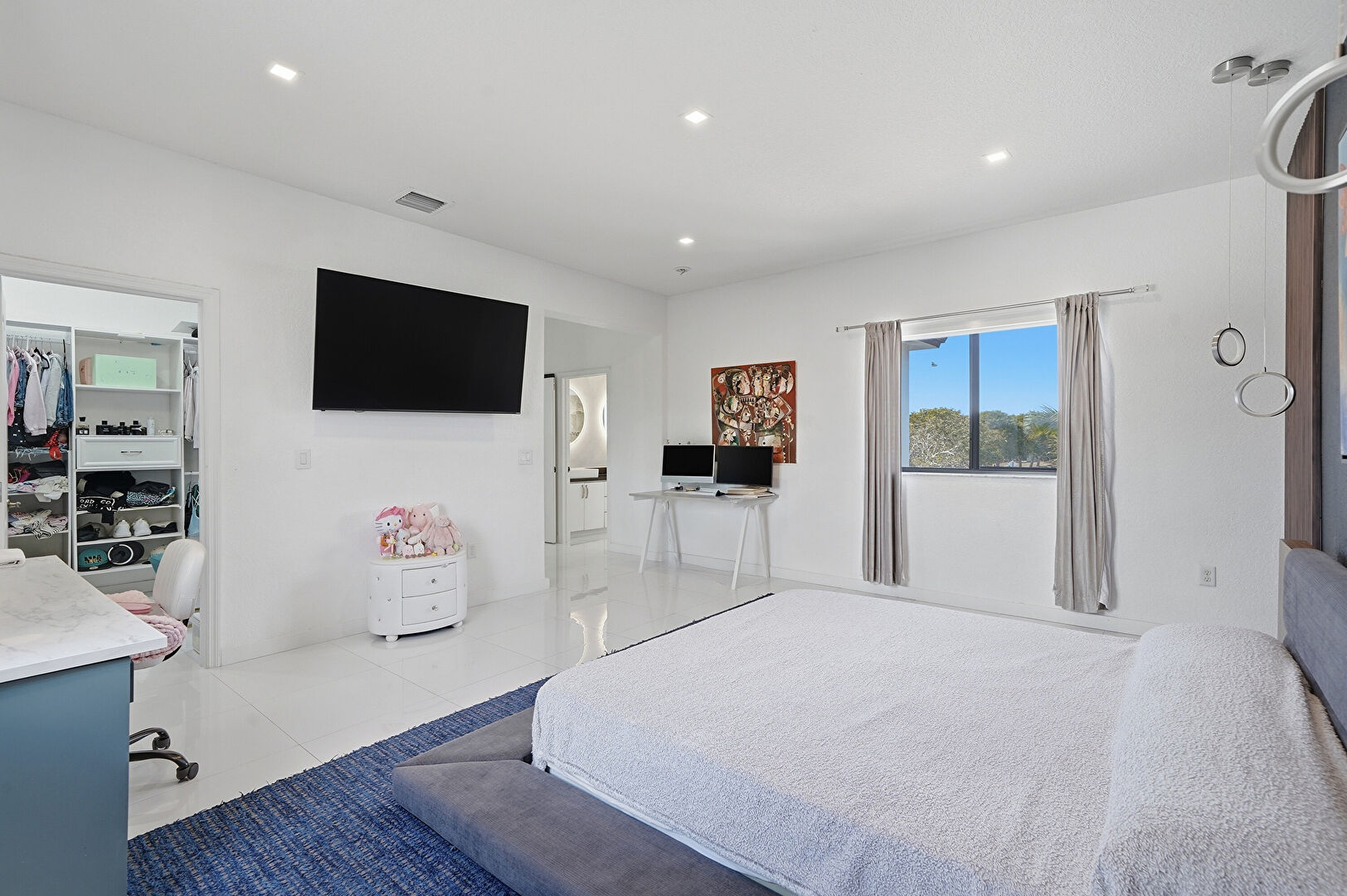 Accent Wall, Baseboards Wall, Ceiling Fan, Closet, Drywall, Natural Light, Office Area, Recessed Lighting, Tile Floor, Vent, Drywall, Office Area, Tile Floor