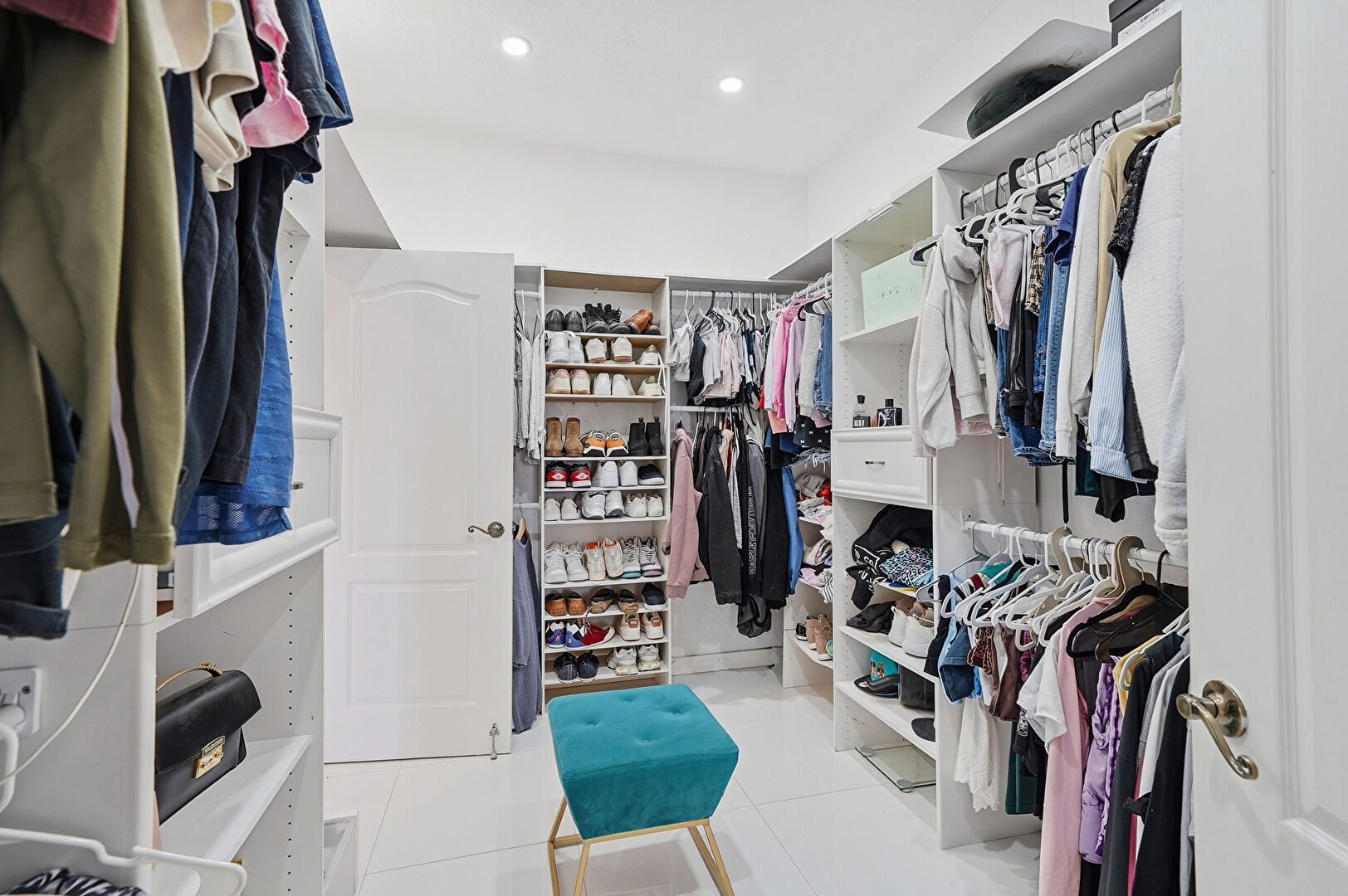 Accent Wall, Drywall, Natural Light, Office Area, Recessed Lighting, Tile Floor, Vent, Walk In Closet, Wood Wall, Baseboards Wall, Office Area, Tile Floor
