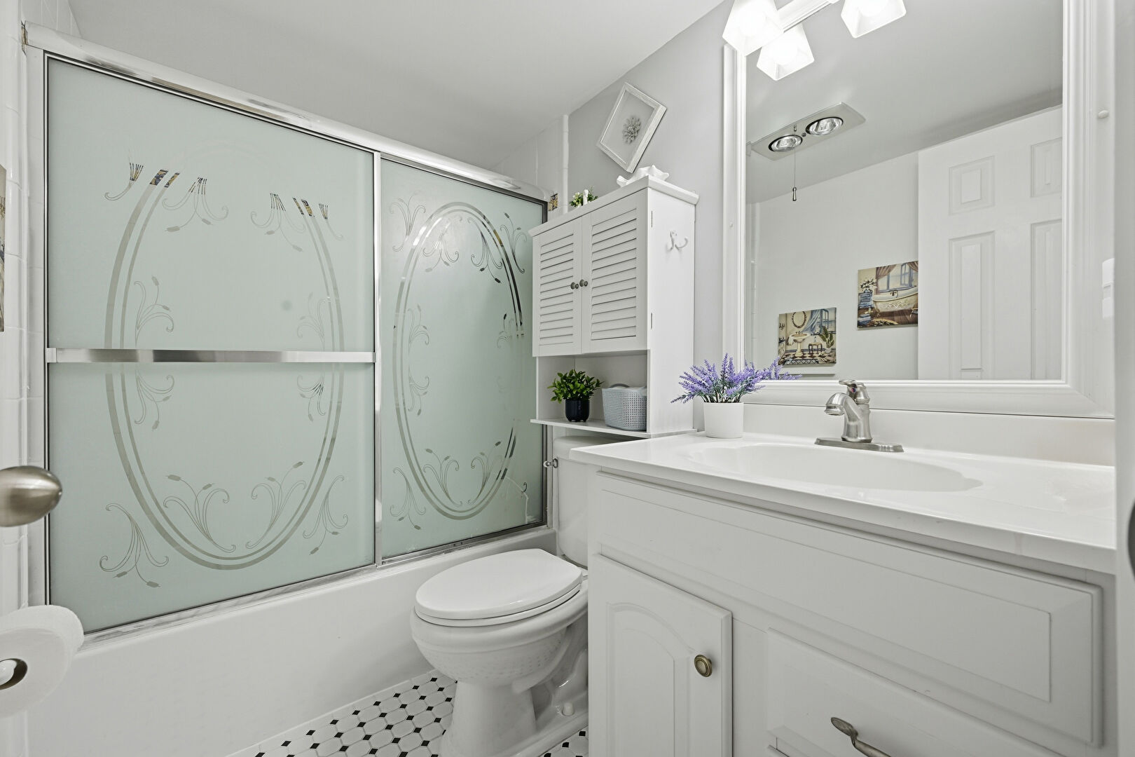 Combined Bath Shower, Drywall, Full Bathroom, Tile Floor, Vanity