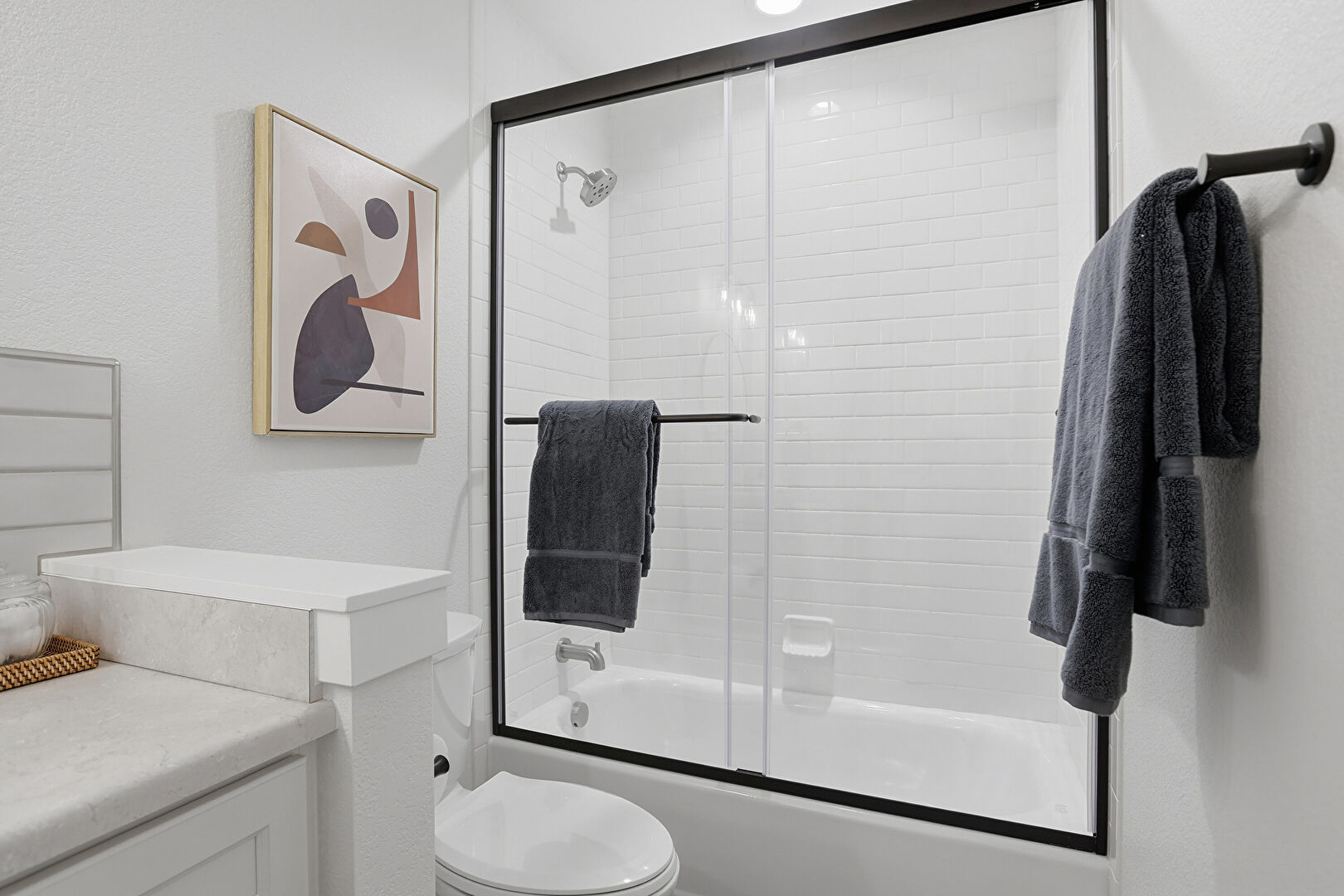 Combined Bath Shower, Drywall, Full Bathroom, Half Bathroom, Recessed Lighting, Textured Wall, Vanity, Vent, Wood Finish Floor, Combined Bath Shower, Drywall, Full Bathroom, Vanity