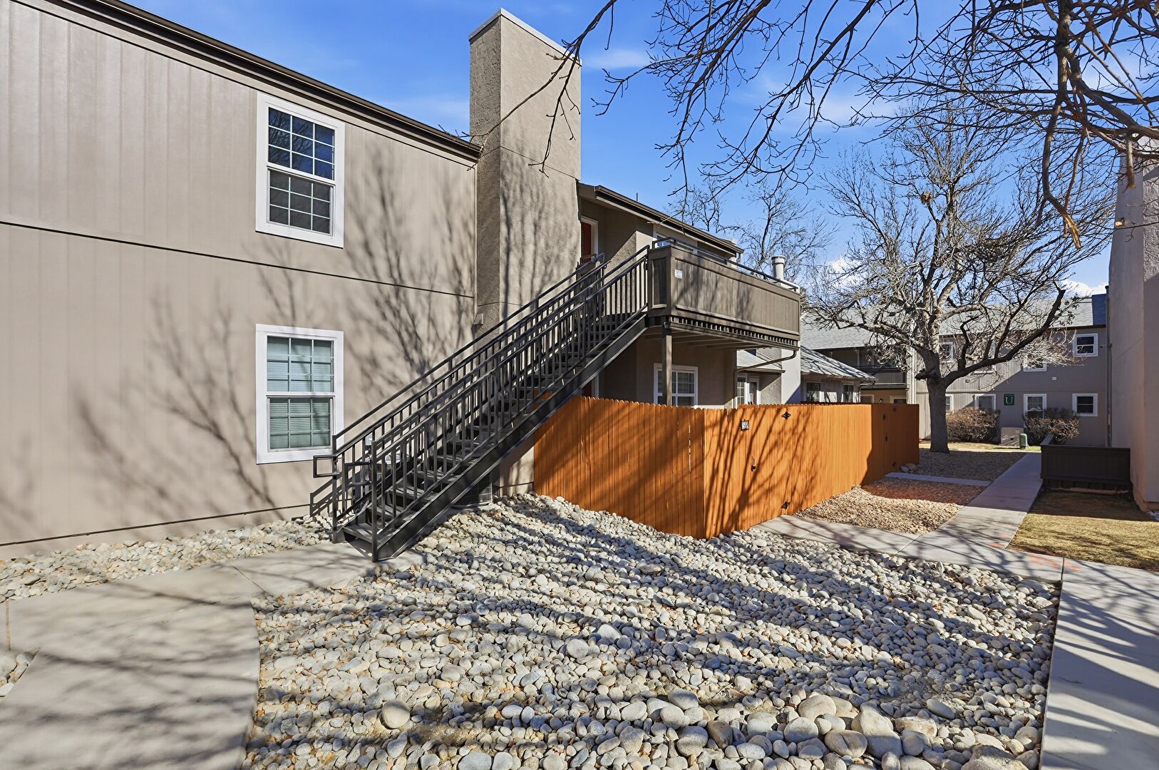 Central Ac, Chimney, Deck, Downspout, Fence, Gate, Gutters, Stairs, Stucco Siding, Balcony, Fence, Gutters, Vertical Siding