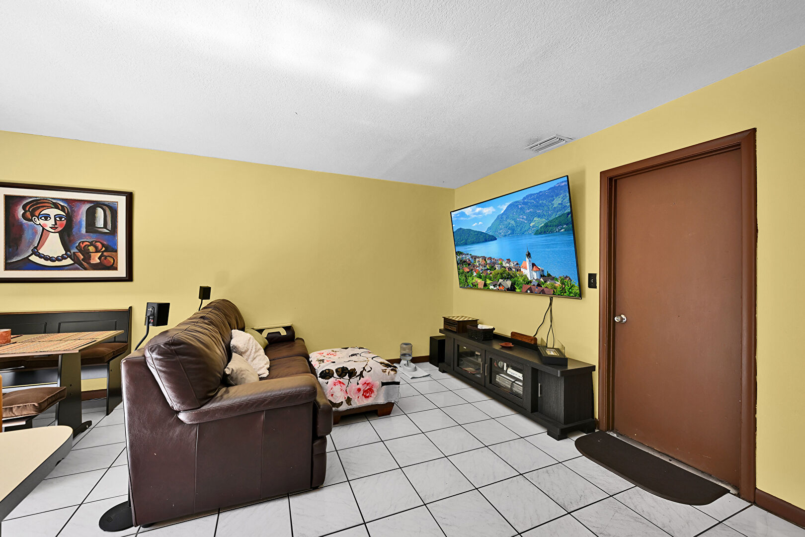 Drywall, Natural Light, Textured Ceiling, Tile Floor