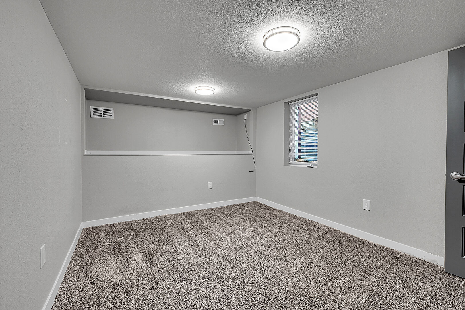 Baseboards Wall, Basement, Carpet, Closet, Drywall, Natural Light, Textured Ceiling, Vent, Baseboards Wall, Drywall