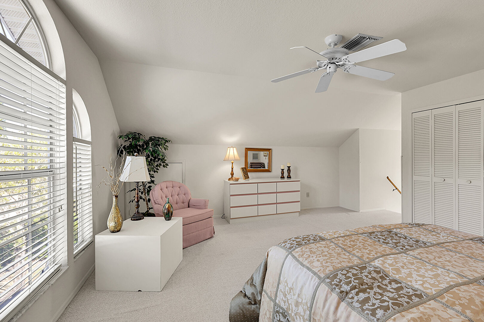 Baseboards Wall, Bonus Room, Carpet, Cathedral Ceiling, Ceiling Fan, Drywall, Natural Light, Two Closets, Vaulted Ceiling, Vent, Baseboards Wall, Bonus Room, Closet, Drywall, Natural Light, Vaulted Ceiling